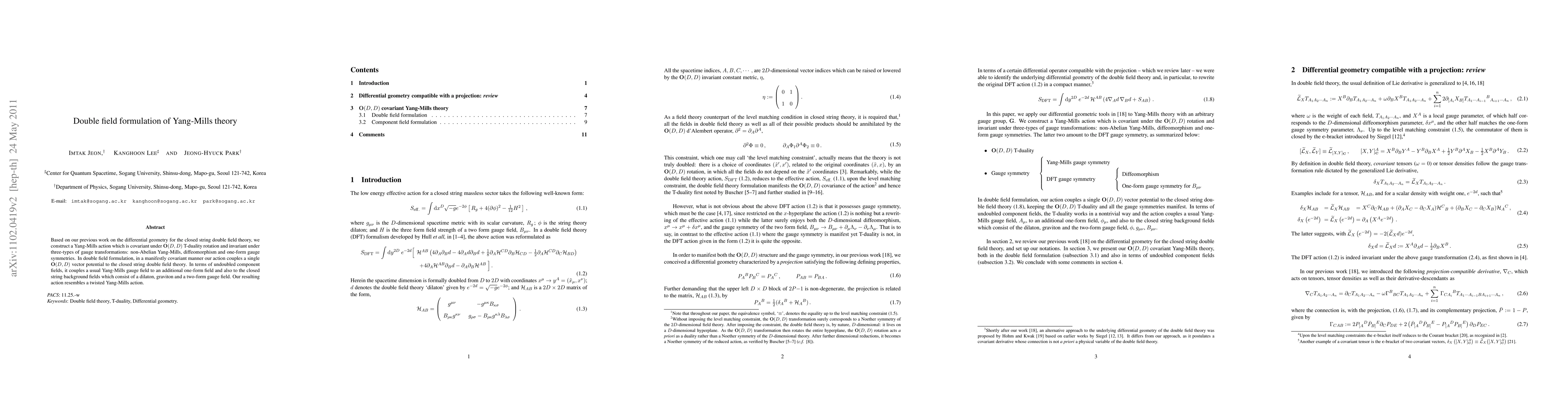 Based on our previous work on the differential geometry for the closed string double field theory, we construct a Yang-Mills action which is covariant under O(D,D) T-duality rotation and invariant under three-types of gauge transformations: non-Abelian Yang-Mills, diffeomorphism and one-form gauge symmetries. In double field formulation, in a manifestly covariant manner our action couples a single O(D,D) vector potential to the closed string double field theory. In terms of undoubled component fields, it couples a usual Yang-Mills gauge field to an additional one-form field and also to the closed string background fields which consist of a dilaton, graviton and a two-form gauge field. Our resulting action resembles a twisted Yang-Mills action.