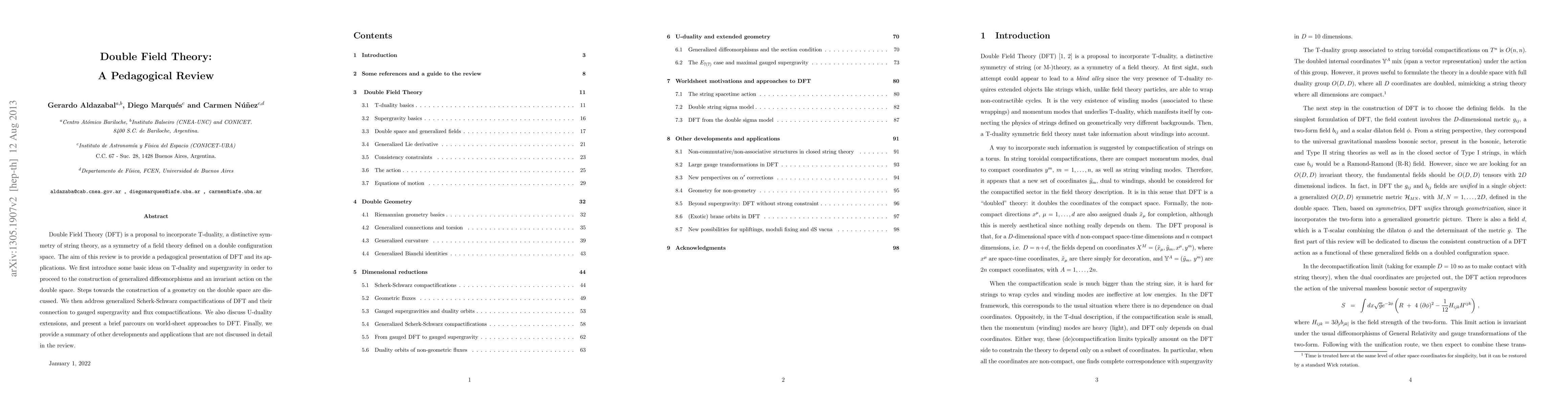 Double Field Theory (DFT) integrates T-duality into a field theory on a double configuration space, offering a unified framework for string theory. This review pedagogically constructs DFT, explores its geometry, and connects it to gauged supergravity and U-duality, while summarizing broader applications.