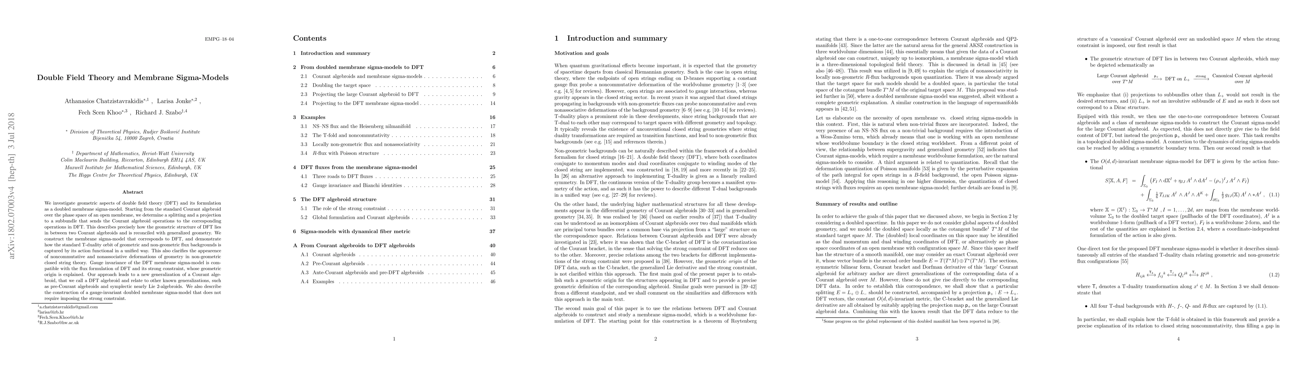 This paper explores the geometric structure of double field theory (DFT) and its relation to membrane sigma-models, demonstrating how DFT bridges two Courant algebroids and incorporates T-duality. It introduces a new DFT algebroid and constructs a gauge-invariant membrane sigma-model, showing compatibility with flux formulations.
