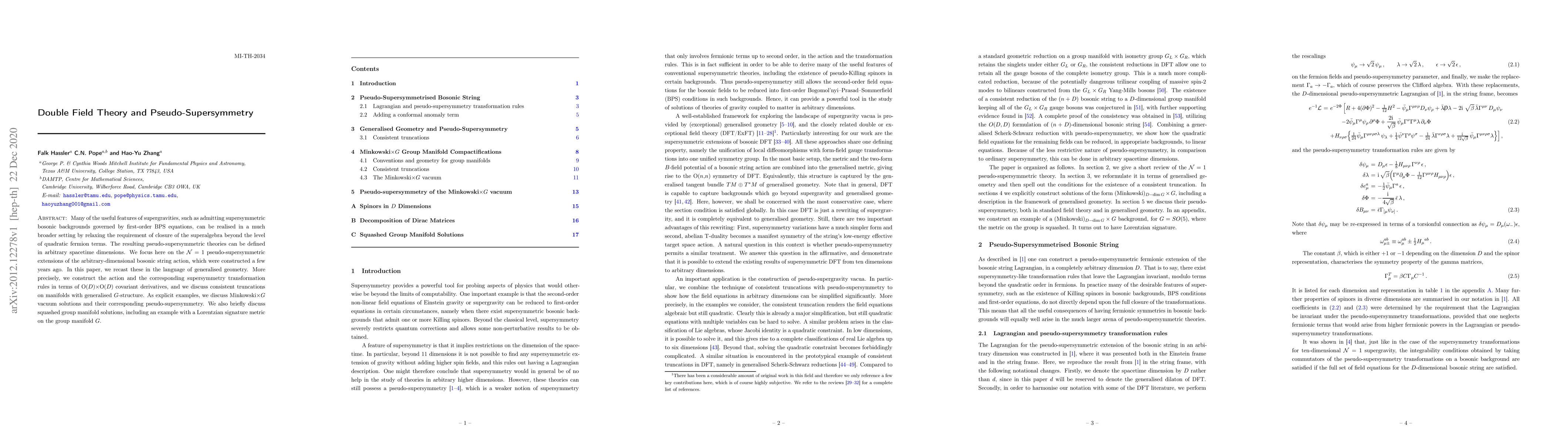 Supersymmetric bosonic backgrounds governed by first-order BPS equations, can be realised in a much broader setting by relaxing the requirement of closure of the superalgebra beyond the level of quadratic fermion terms. The resulting pseudo-supersymmetric theories can be defined in arbitrary spacetime dimensions. We focus here on the ${\cal N}=1$ pseudo-supersymmetric extensions of the arbitrary-dimensional bosonic string action, which were constructed a few years ago. In this paper, we recast these in the language of generalised geometry. More precisely, we construct the action and the corresponding supersymmetry transformation rules in terms of O($D$)$\times$O($D$) covariant derivatives, and we discuss consistent truncations on manifolds with generalised $G$-structure. As explicit examples, we discuss Minkowski$\times G$ vacuum solutions and their corresponding pseudo-supersymmetry. We also briefly discuss squashed group manifold solutions, including an example with a Lorentzian signature metric on the group manifold $G$.