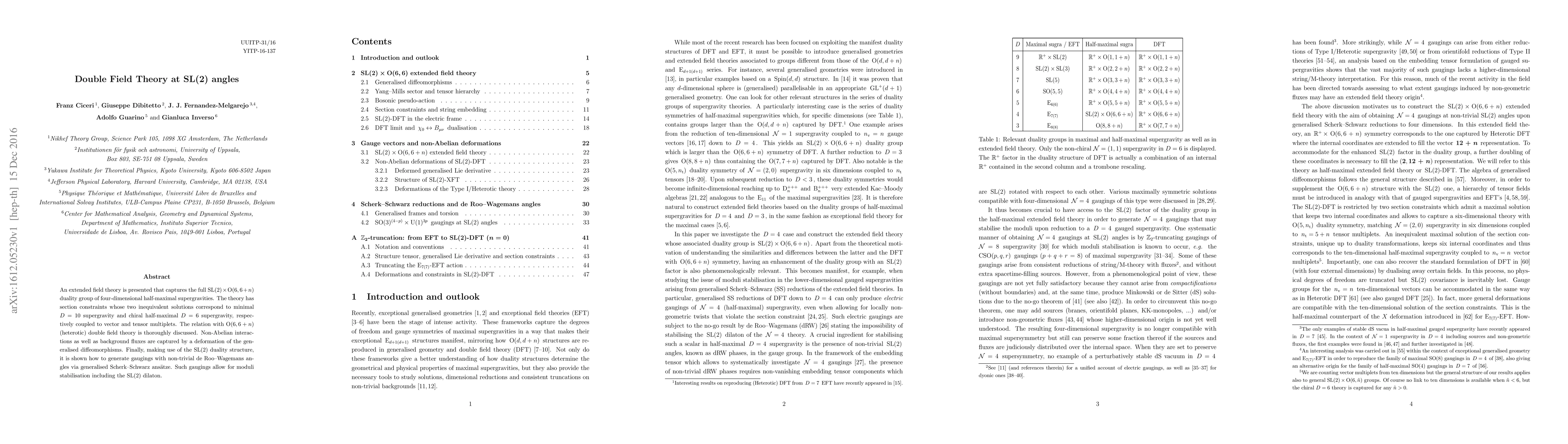 An extended field theory is presented that captures the full SL(2) x O(6,6+n) duality group of four-dimensional half-maximal supergravities. The theory has section constraints whose two inequivalent solutions correspond to minimal D=10 supergravity and chiral half-maximal D=6 supergravity, respectively coupled to vector and tensor multiplets. The relation with O(6,6+n) (heterotic) double field theory is thoroughly discussed. Non-Abelian interactions as well as background fluxes are captured by a deformation of the generalised diffeomorphisms. Finally, making use of the SL(2) duality structure, it is shown how to generate gaugings with non-trivial de Roo-Wagemans angles via generalised Scherk-Schwarz ansaetze. Such gaugings allow for moduli stabilisation including the SL(2) dilaton.