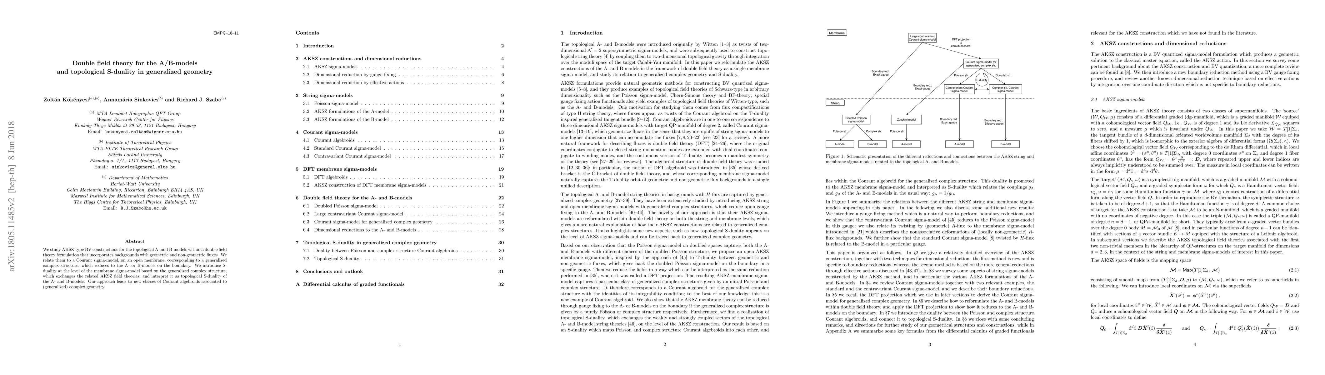 This paper explores AKSZ-type BV constructions for topological A- and B-models within a double field theory framework, linking them to a generalized complex structure on an open membrane. It introduces topological S-duality based on the generalized complex structure, leading to new classes of Courant algebroids.