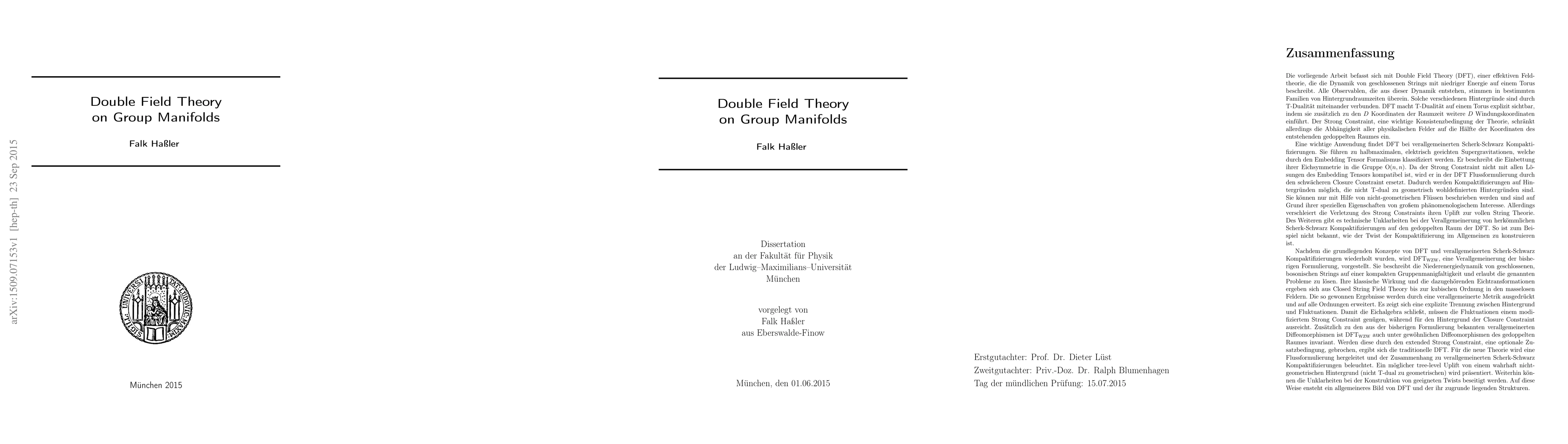 This thesis deals with Double Field Theory (DFT), an effective field theory capturing the low energy dynamics of closed strings on a torus. It renders T-duality on a torus manifest by adding $D$ winding coordinates in addition to the $D$ space time coordinates. An essential consistency constraint of the theory, the strong constraint, only allows for field configurations which depend on half of the coordinates of the arising doubled space. I derive DFT${}_\mathrm{WZW}$, a generalization of the current formalism. It captures the low energy dynamics of a closed bosonic string propagating on a compact group manifold. Its classical action and the corresponding gauge transformations arise from Closed String Field Theory up to cubic order in the massless fields. These results are rewritten in terms of a generalized metric and extended to all orders in the fields. There is an explicit distinction between background and fluctuations. For the gauge algebra to close, the latter have to fulfill a modified strong constraint, while for the former the weaker closure constraint is sufficient. Besides the generalized diffeomorphism invariance known from the original formulation, DFT${}_\mathrm{WZW}$ is invariant under standard diffeomorphisms of the doubled space. They are broken by imposing the totally optional extended strong constraint. In doing so, the original formulation is restored. A flux formulation for the new theory is derived and its connection to generalized Scherk-Schwarz compactifications is discussed. Further, a possible tree-level uplift of a genuinely non-geometric background (not T-dual to any geometric configuration) is presented. Finally, a long standing problem, the missing of a prescription to construct the twist in generalized Scherk-Schwarz compactifications, is solved. Altogether, a more general picture of DFT and the structures it is based on emerges.