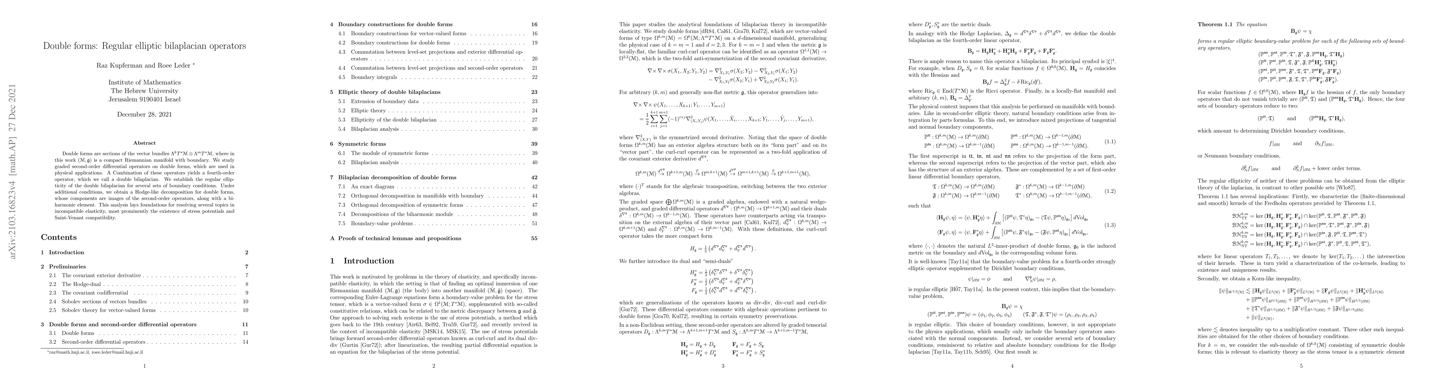 The paper introduces and analyzes regular elliptic bilaplacian operators on double forms, providing a Hodge-like decomposition under specific boundary conditions.