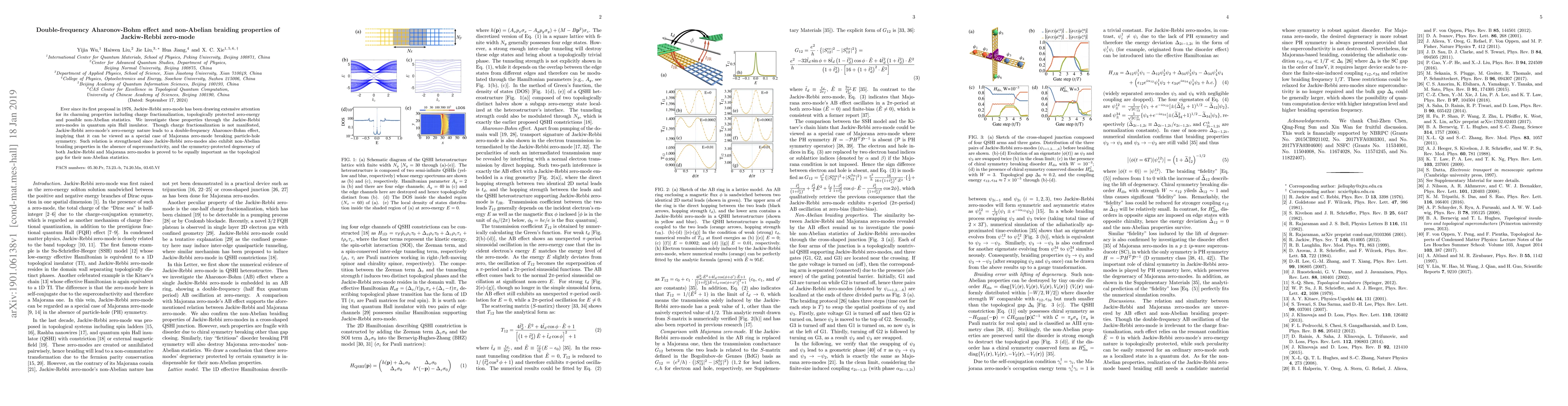 This paper explores the Jackiw-Rebbi zero-mode in quantum spin Hall insulators, revealing a double-frequency Aharonov-Bohm effect and non-Abelian braiding properties, akin to Majorana zero-modes, despite no charge fractionalization, emphasizing the importance of symmetry-protected degeneracy.