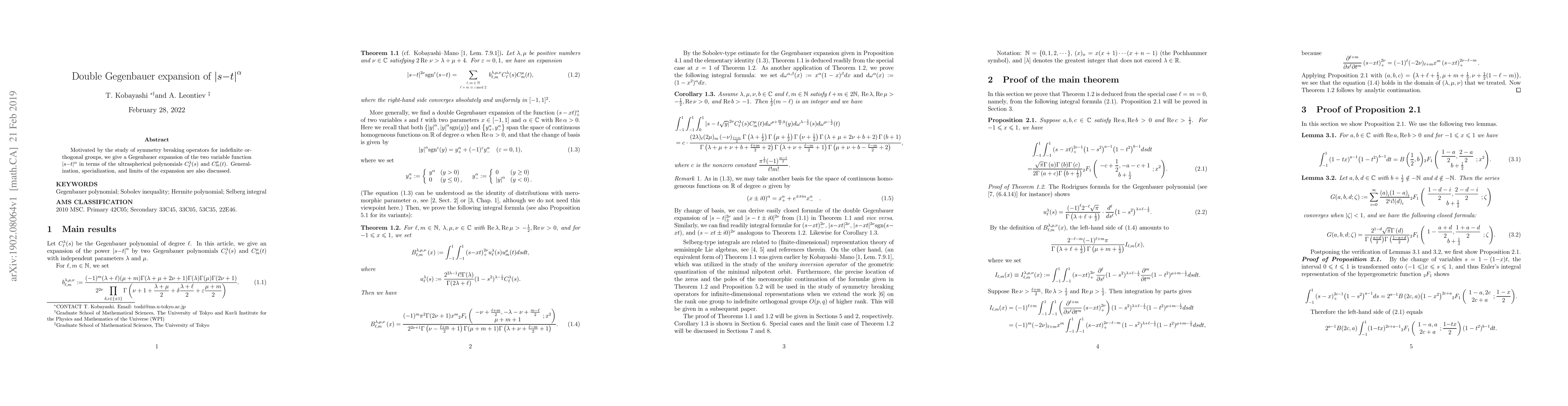 The paper provides a Gegenbauer expansion of $|s - t|^{eta}$ using ultraspherical polynomials, offering insights into function representation and generalization possibilities.