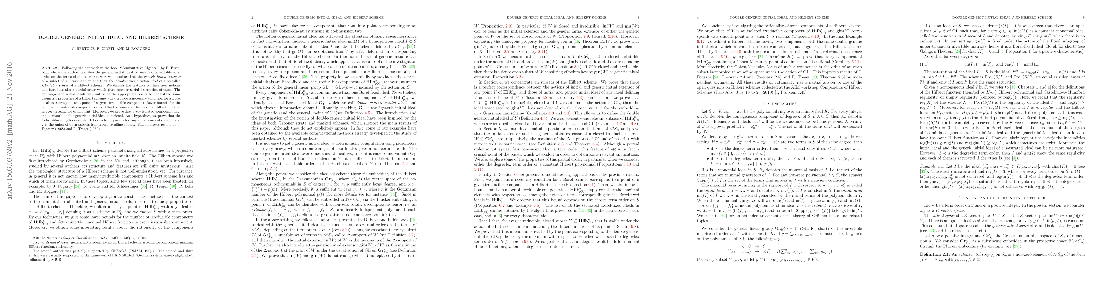 Following the approach in the book "Commutative Algebra", by D. Eisenbud, where the author describes the generic initial ideal by means of a suitable total order on the terms of an exterior power, we introduce first the generic initial extensor of a subset of a Grassmannian and then the double-generic initial ideal of a so-called GL-stable subset of a Hilbert scheme. We discuss the features of these new notions and introduce also a partial order which gives another useful description of them. The double-generic initial ideals turn out to be the appropriate points to understand some geometric properties of a Hilbert scheme: they provide a necessary condition for a Borel ideal to correspond to a point of a given irreducible component, lower bounds for the number of irreducible components in a Hilbert scheme and the maximal Hilbert function in every irreducible component. Moreover, we prove that every isolated component having a smooth double-generic initial ideal is rational. As a byproduct, we prove that the Cohen-Macaulay locus of the Hilbert scheme parameterizing subschemes of codimension 2 is the union of open subsets isomorphic to affine spaces. This improves results by J. Fogarty (1968) and R. Treger (1989).