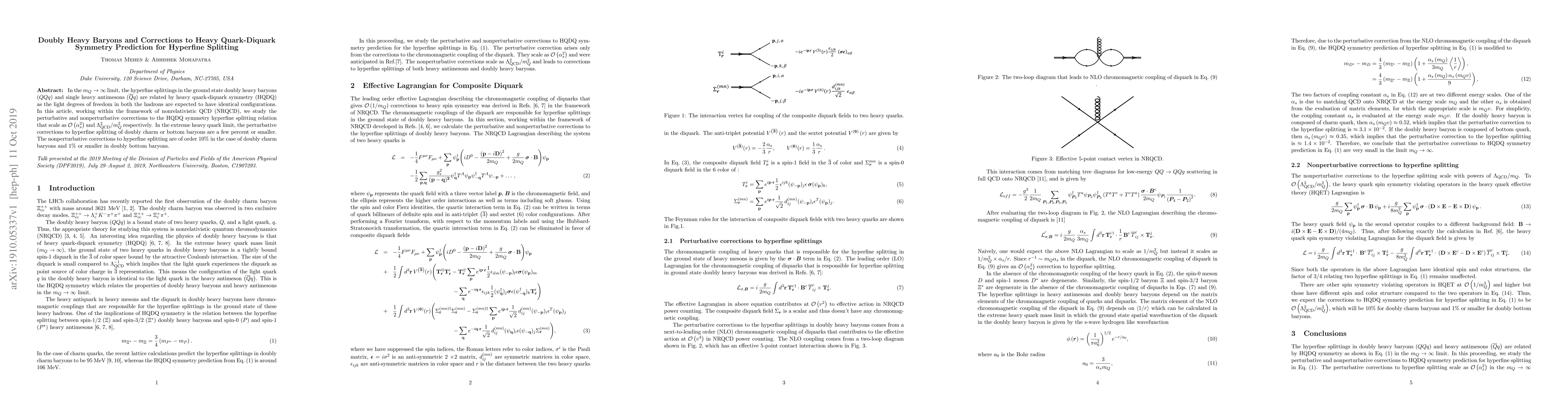This paper investigates corrections to heavy quark-diquark symmetry in doubly heavy baryons and single heavy antimesons, predicting hyperfine splittings within the nonrelativistic QCD framework. Perturbative and nonperturbative corrections are analyzed, showing that while perturbative corrections are small, nonperturbative corrections can be significant, especially for doubly charm baryons.