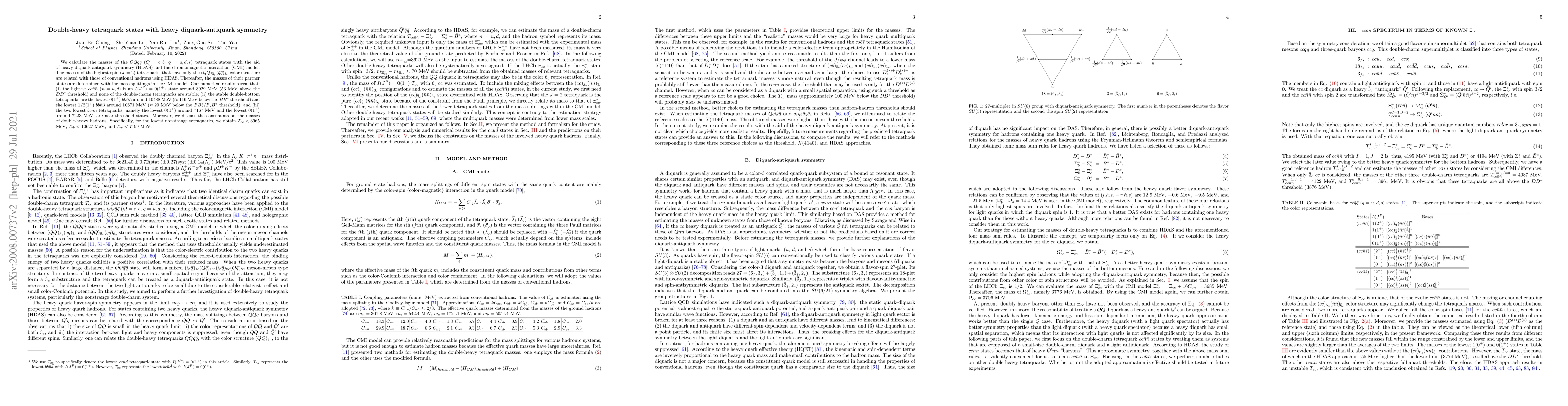 We calculate the masses of the $QQ\bar{q}\bar{q}$ ($Q=c,b$; $q=u,d,s$) tetraquark states with the aid of heavy diquark-antiquark symmetry (HDAS) and the chromomagnetic interaction (CMI) model. The masses of the highest-spin ($J=2$) tetraquarks that have only the $(QQ)_{\bar{3}_c}(\bar{q}\bar{q})_{3_c}$ color structure are related with those of conventional hadrons using HDAS. Thereafter, the masses of their partner states are determined with the mass splittings in the CMI model. Our numerical results reveal that: (i) the lightest $cc\bar{n}\bar{n}$ ($n=u,d$) is an $I(J^P)=0(1^+)$ state around 3929 MeV (53 MeV above the $DD^*$ threshold) and none of the double-charm tetraquarks are stable; (ii) the stable double-bottom tetraquarks are the lowest $0(1^+)$ $bb\bar{n}\bar{n}$ around 10488 MeV ($\approx116$ MeV below the $BB^*$ threshold) and the lowest $1/2(1^+)$ $bb\bar{n}\bar{s}$ around 10671 MeV ($\approx20$ MeV below the $BB_s^*/B_sB^*$ threshold); and (iii) the two lowest $bc\bar{n}\bar{n}$ tetraquarks, namely the lowest $0(0^+)$ around 7167 MeV and the lowest $0(1^+)$ around 7223 MeV, are near-threshold states. Moreover, we discuss the constraints on the masses of double-heavy hadrons. Specifically, for the lowest nonstrange tetraquarks, we obtain $T_{cc}<3965$ MeV, $T_{bb}<10627$ MeV, and $T_{bc}<7199$ MeV.