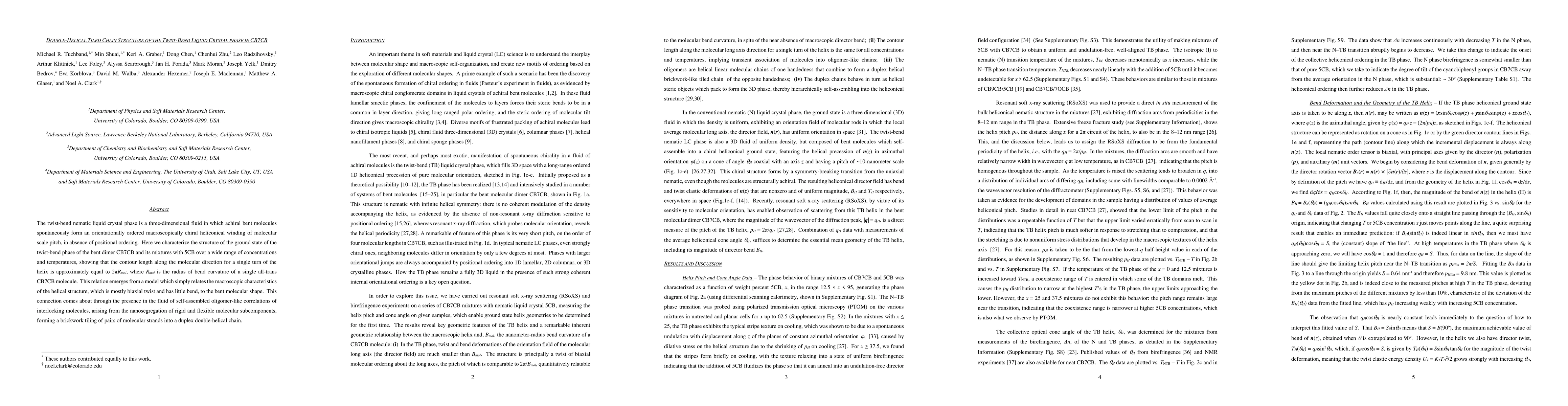This paper characterizes the twist-bend nematic liquid crystal phase in CB7CB, revealing a double-helical tiled chain structure formed by self-assembled interlocking molecules. The helical structure's contour length per turn correlates with the molecular radius of bend curvature, demonstrating a biaxial twist with minimal bend.