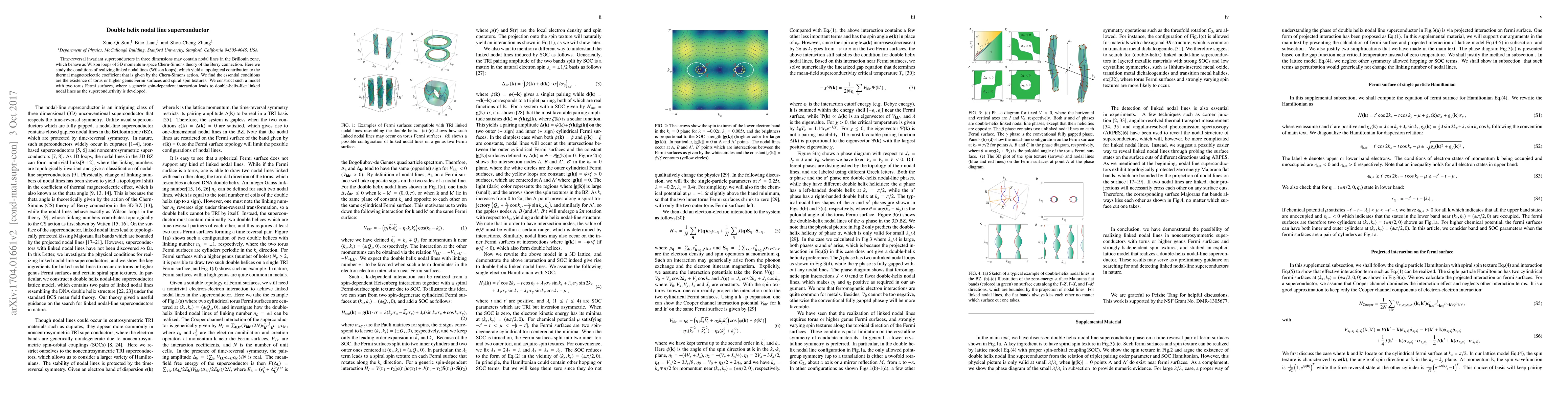 Time-reversal invariant superconductors in three dimensions may contain nodal lines in the Brillouin zone, which behave exactly as Wilson loops of 3d momentum-space Chern-Simons theory of the Berry connection. Here we study the conditions of realizing linked nodal lines (Wilson loops), which yield a topological contribution to the thermal magnetoelectric coefficient that is given by the Chern-Simons action. We find the essential conditions are the existence of torus or higher genus fermi surfaces and spiral spin textures. We construct such a model with two torus fermi surfaces, where a generic spin-dependent interaction leads to double-helix-like linked nodal lines as the superconductivity is developed.