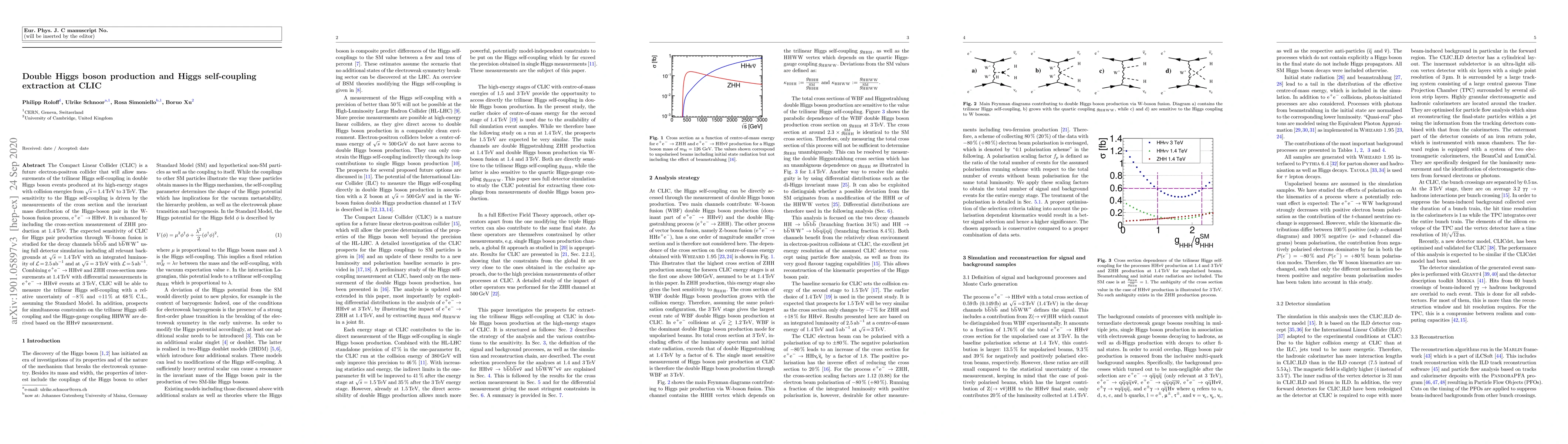 The CLIC collider aims to measure the trilinear Higgs self-coupling through double Higgs boson production in W-boson fusion, achieving a relative uncertainty of $\pm11\%$ at 68% C.L. with 5 ab$^{-1}$ integrated luminosity at 3 TeV. This precision is enhanced by detailed cross-section and invariant mass distribution measurements.