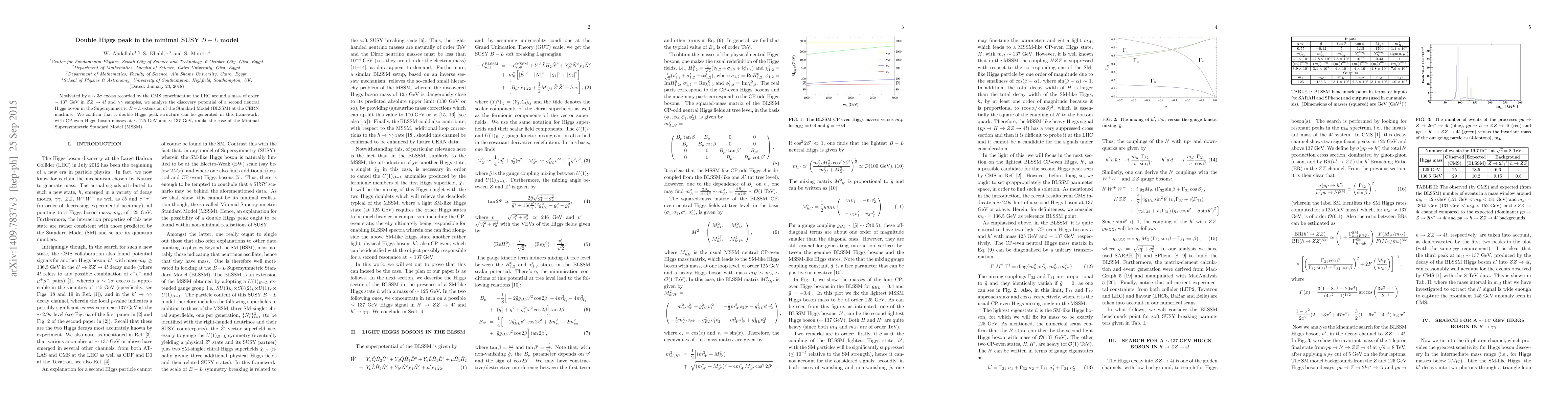 Researchers analyze a potential double Higgs peak in the minimal SUSY B-L model, confirming that it can produce two CP-even Higgs boson masses at 125 GeV and 137 GeV, unlike the MSSM.