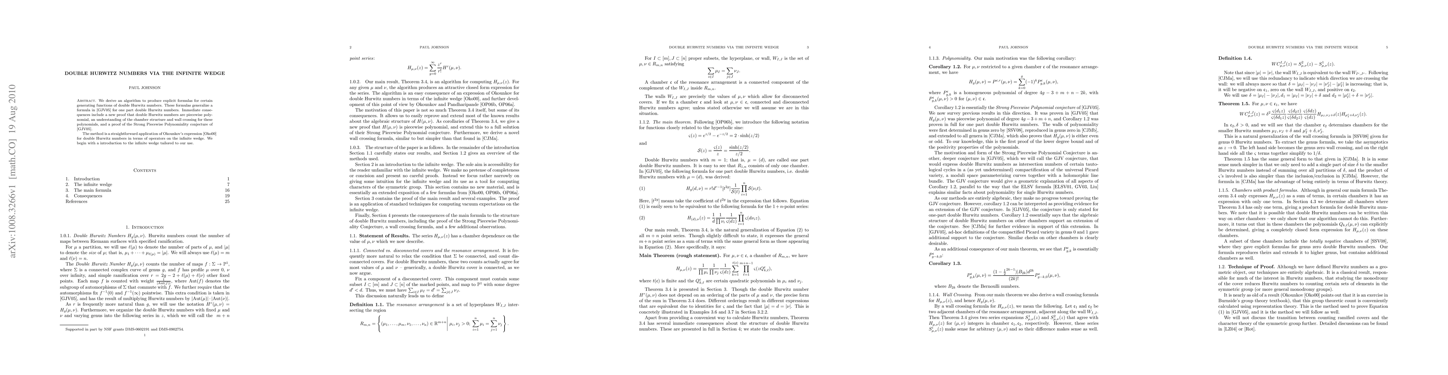 We derive an algorithm to produce explicit formulas for certain generating functions of double Hurwitz numbers. These formulas generalize a formula of Goulden, Jackson and Vakil for one part double Hurwitz numbers. Immediate consequences include a new proof that double Hurwitz numbers are piecewise polynomial, an understanding of the chamber structure and wall crossing for these polynomials, and a proof of the Goulden, Jackson and Vakil's Strong Piecewise Polynomiality conjecture. The method is a straightforward application of Okounkov's expression for double Hurwitz numbers in terms of operators on the infinite wedge. We begin with a introduction to the infinite wedge tailored to our use.