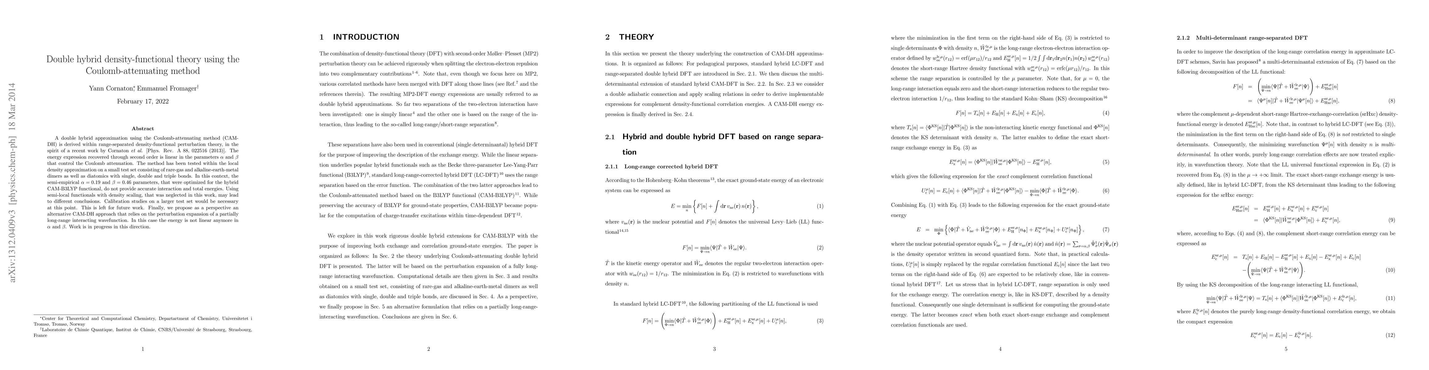 This paper proposes a double hybrid density-functional theory using the Coulomb-attenuating method (CAM-DH) within range-separated DFT. Initial tests show limitations in accuracy with the current semi-empirical parameters, suggesting future calibration on a larger dataset and an alternative CAM-DH approach based on a long-range interacting wavefunction is proposed.