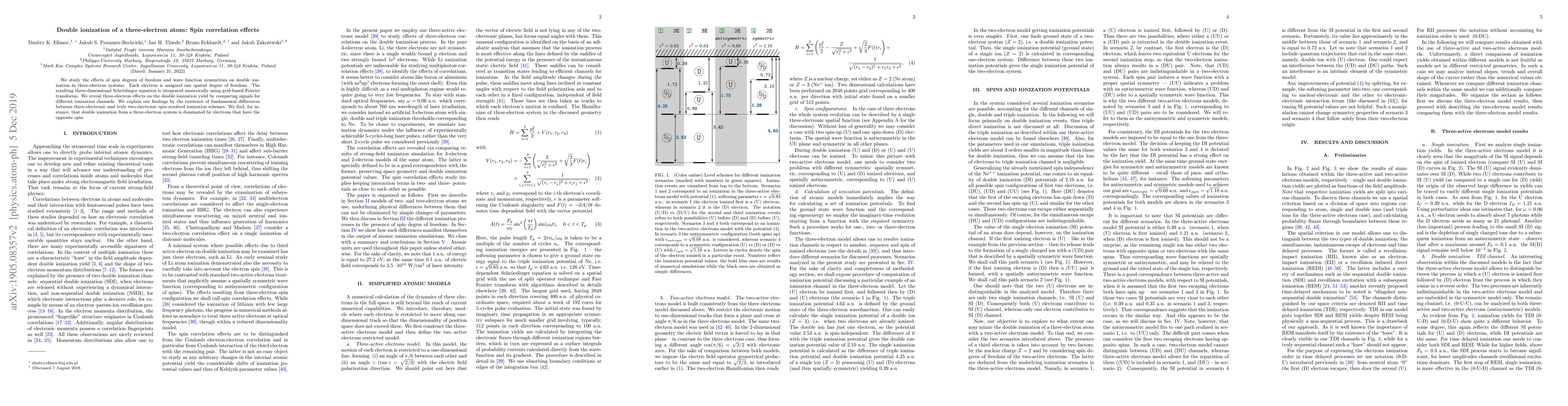 Researchers studied how spin degrees of freedom affect double ionization in three-electron atoms, finding that electrons with opposite spins dominate the process.