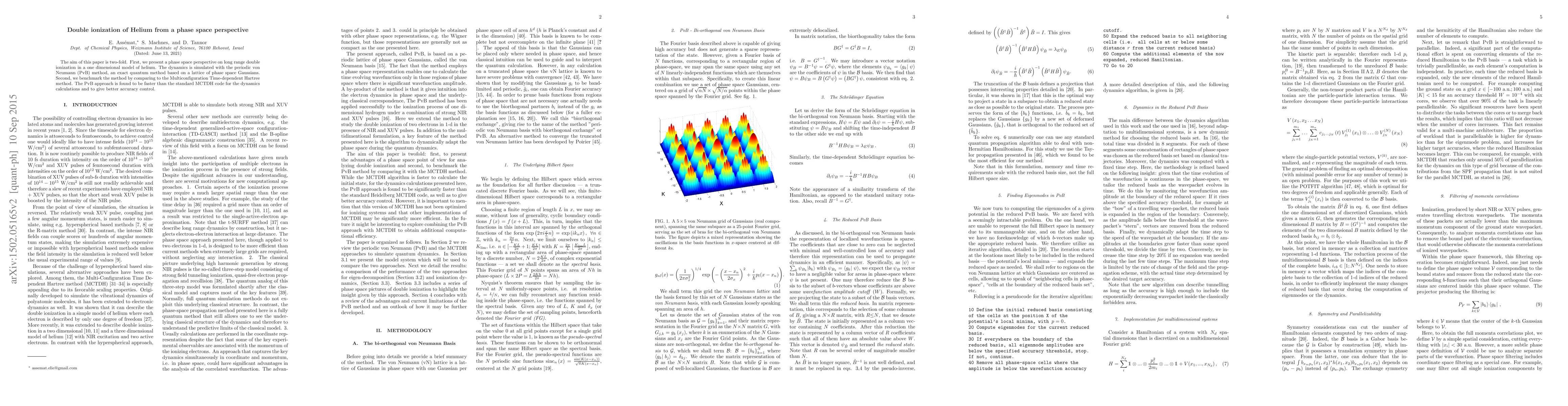 The aim of this paper is two-fold. First, we present a phase space perspective on long range double ionization in a one dimensional model of helium. The dynamics is simulated with the periodic von Neumann (PvB) method, an exact quantum method based on a lattice of phase space Gaussians. Second, we benchmark the method by comparing to the Multiconfiguration Time-dependent Hartree method. The PvB approach is found to be faster than the standard MCTDH code for the dynamics calculations and to give better accuracy control.