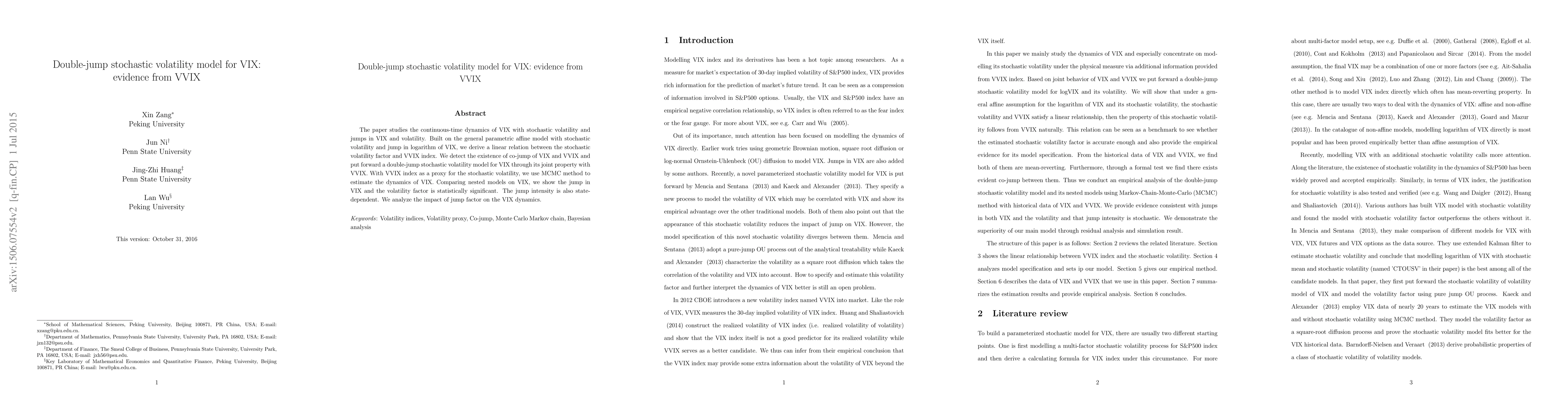The paper proposes a double-jump stochastic volatility model for VIX, incorporating both VIX and VVIX jumps, and uses MCMC estimation to analyze its dynamics. It finds that both VIX jumps and the volatility factor are statistically significant, with state-dependent jump intensity.