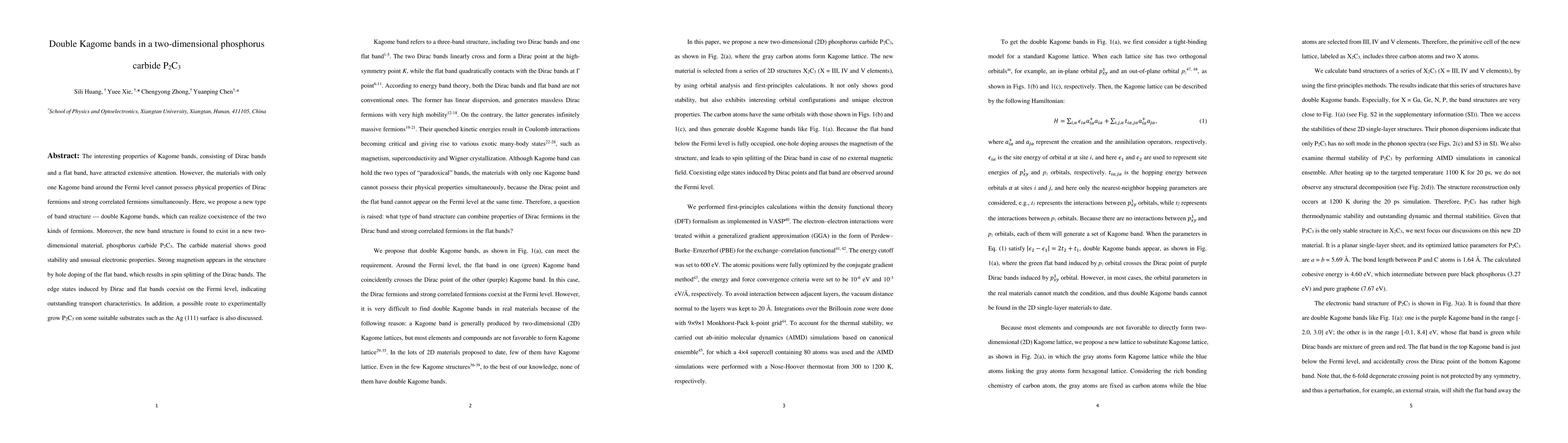 A new material, phosphorus carbide P2C3, exhibits double Kagome bands that enable both Dirac fermions and strong correlated fermions simultaneously, showing unusual electronic properties and promising transport characteristics.