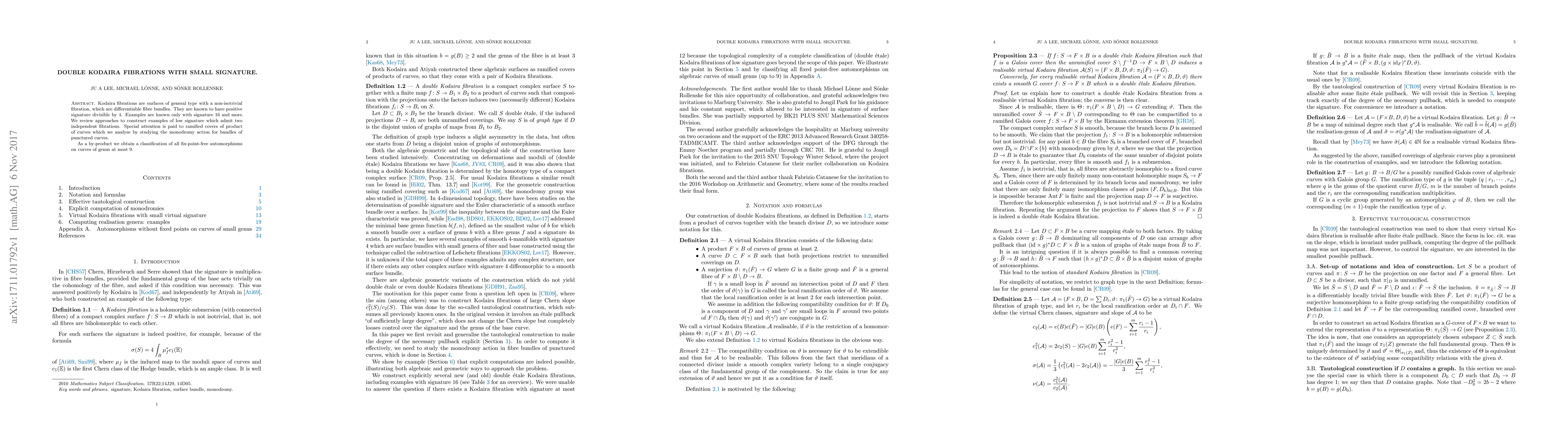 This paper explores constructing Kodaira fibrations with small signatures, focusing on those admitting two independent fibrations, and uses ramified covers of curve products to achieve this. Additionally, it classifies fix-point-free automorphisms on curves of genus up to 9.