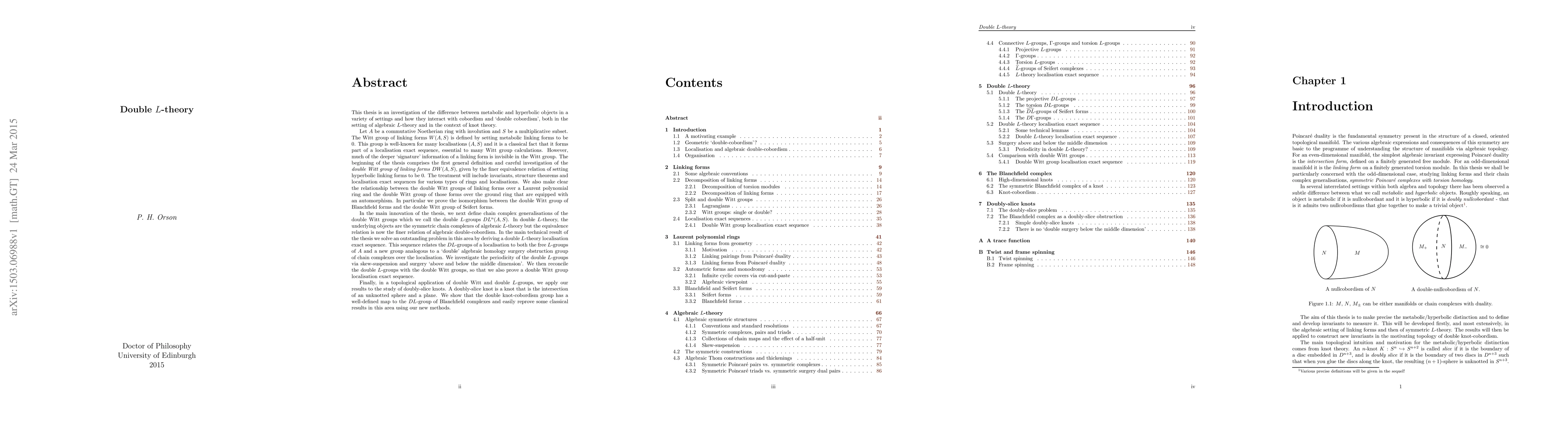 We develop new algebraic methods refining the Witt group of linking forms and Ranicki's torsion algebraic L-groups into double Witt groups and double L-groups. At each prime ideal of the underlying ring, our double Witt groups capture infinitely many more integral signatures of the linking form than the single Witt groups. The double L-groups are an algebraic theory of `double cobordism', refining L-theory analogously. We exhibit an exact sequence relating the double L-groups to classical projective L-theory via a double homology surgery obstruction group. The algebraic techniques are applied to high-dimensional knot theory to define new invariants for the study of doubly-slice knots. In particular we prove a homomorphism from the n-dimensional double concordance group to a double L-group, which factors the construction of the Blanchfield form. Some results of Stoltzfus in this area are reproved and we show that every Seifert matrix for a doubly-slice knot is hyperbolic.