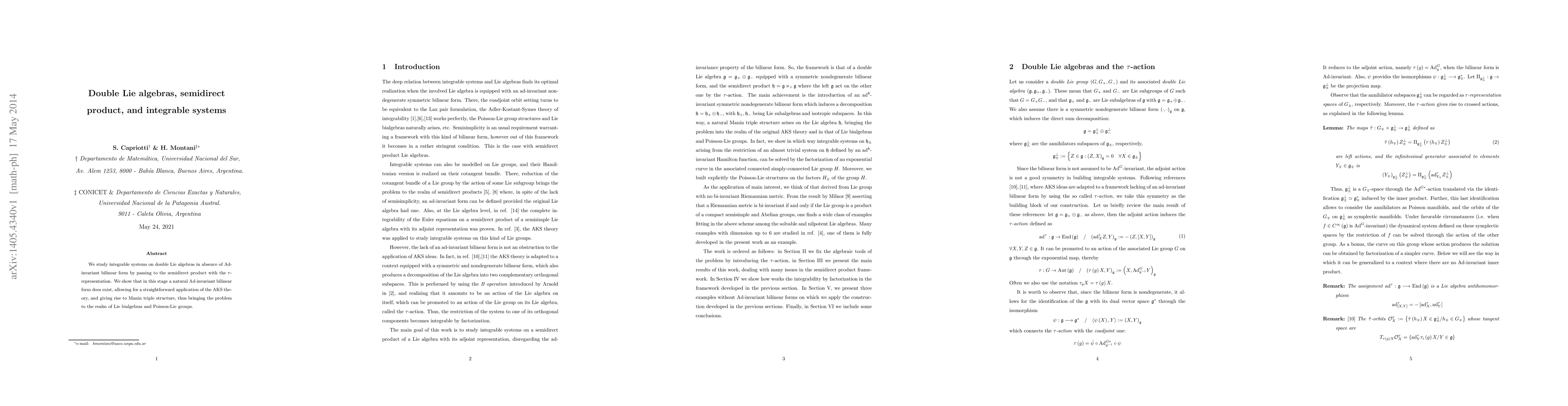 Developed a method to obtain AKS integrables systems over taking the lack of an Ad-invariant bilinear form in the associated Lie algebra.