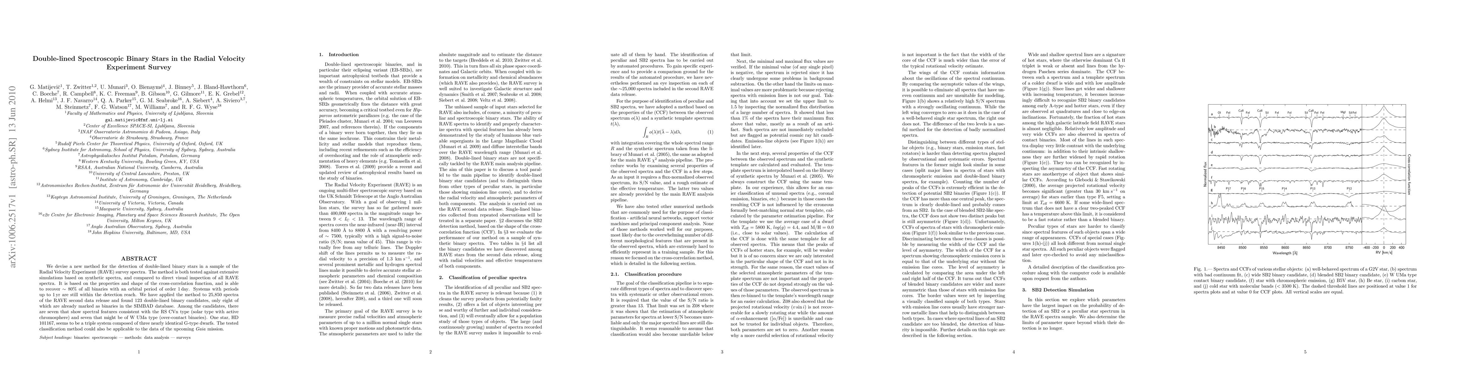 This paper introduces a new method for detecting double-lined spectroscopic binary stars using the Radial Velocity Experiment (RAVE) survey data, achieving ~80% recovery for binaries with periods around 1 day. The method identified 123 new double-lined binary candidates from RAVE spectra, including several RS CVn and W UMa types.