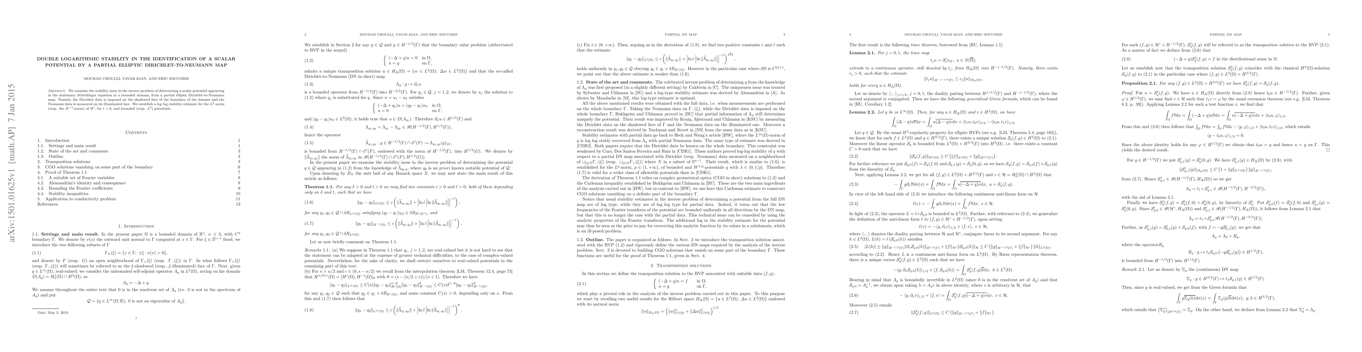 This paper investigates the stability of identifying a scalar potential in the stationary Schrödinger equation using partial elliptic Dirichlet-to-Neumann maps. It establishes a double logarithmic stability estimate for the L2-norm and H-1-norm of bounded and L2 potentials, respectively.