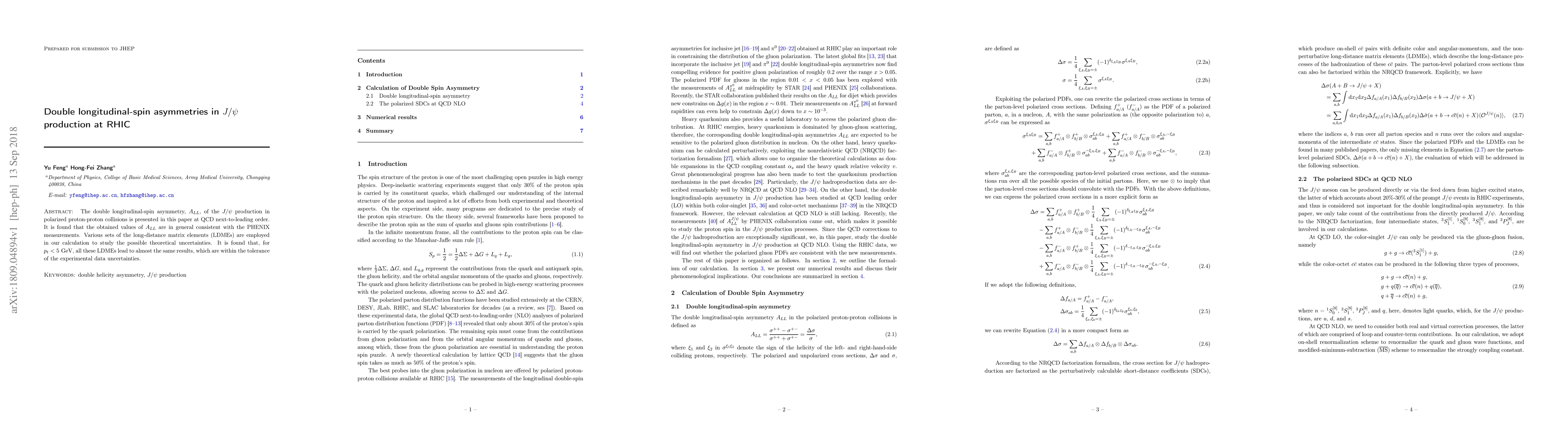 Researchers measured double longitudinal-spin asymmetry in J/psi production at RHIC using QCD calculations, finding values consistent with PHENIX measurements, and demonstrated that different long-distance matrix elements lead to similar results for small p_t values.