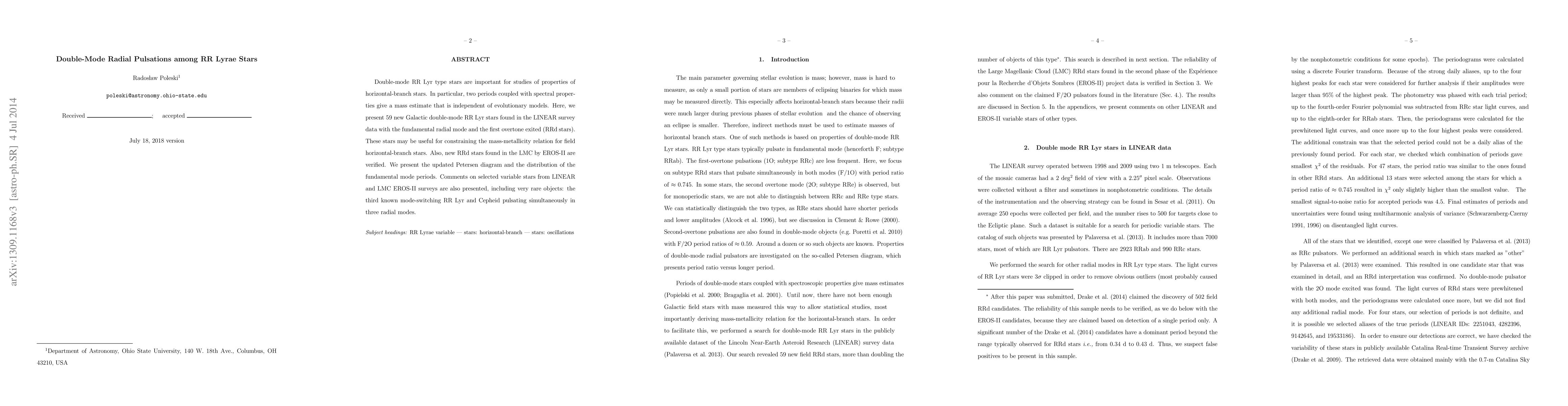 Double-mode RR Lyr type stars are important for studies of properties of horizontal-branch stars. In particular, two periods coupled with spectral properties give a mass estimate that is independent of evolutionary models. Here, we present 59 new Galactic double-mode RR Lyr stars found in the LINEAR survey data with the fundamental radial mode and the first overtone exited (RRd stars). These stars may be useful for constraining the mass-metallicity relation for field horizontal-branch stars. Also, new RRd stars found in the LMC by EROS-II are verified. We present the updated Petersen diagram and the distribution of the fundamental mode periods. Comments on selected variable stars from LINEAR and LMC EROS-II surveys are also presented, including very rare objects: the third known mode-switching RR Lyr and Cepheid pulsating simultaneously in three radial modes.