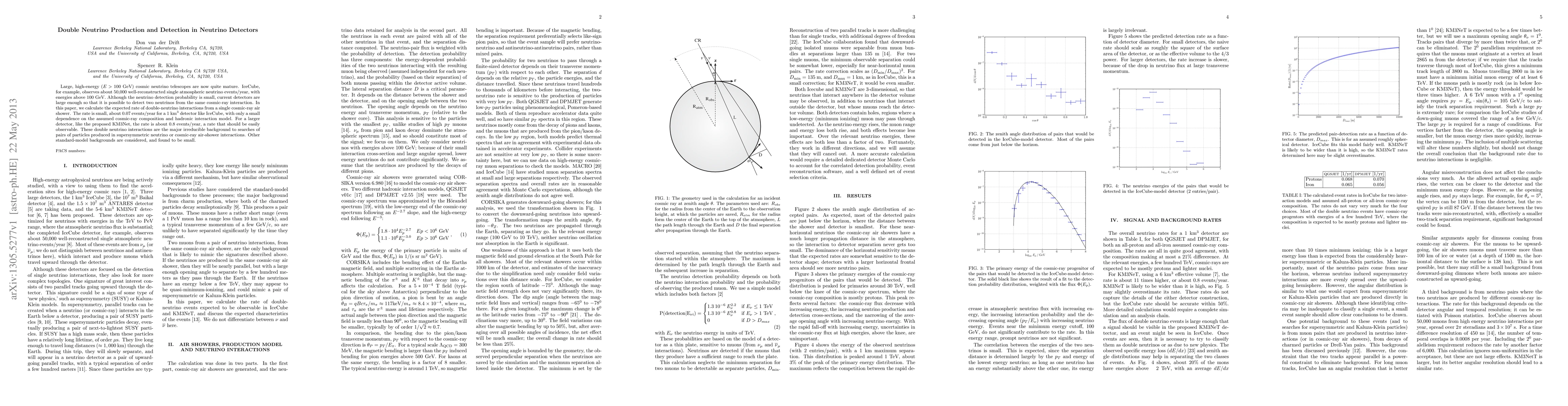This paper calculates the expected rate of double-neutrino interactions from cosmic-ray air showers detected in large neutrino telescopes, finding a small but observable rate of about 0.07 events/year for IceCube and 0.8 events/year for the proposed KM3Net. These interactions serve as a major irreducible background for searches of supersymmetric neutrino pairs.