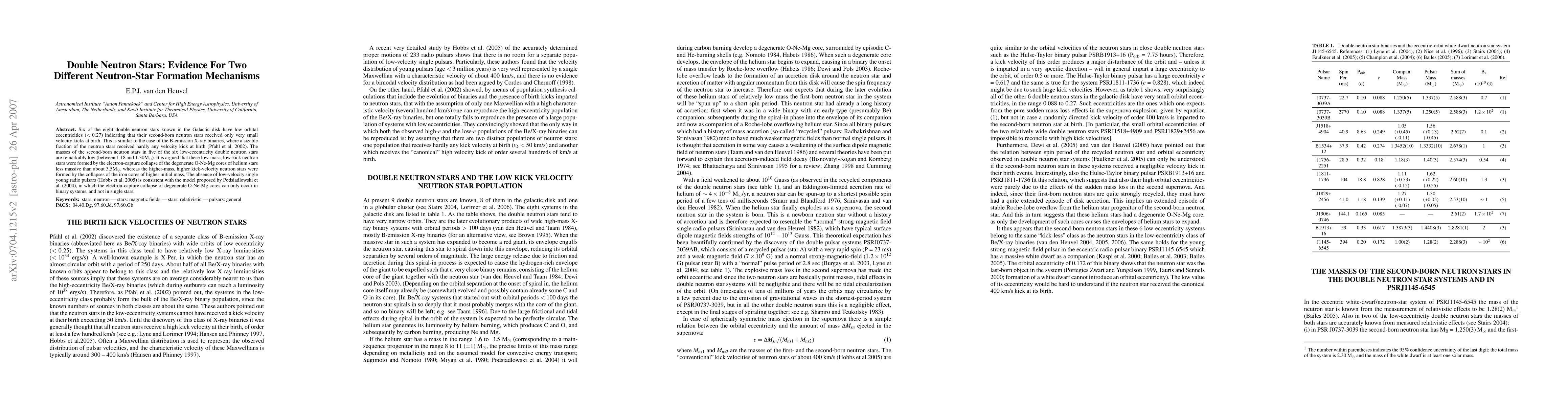 Six double neutron stars show low orbital eccentricities, suggesting they were formed with small velocity kicks, differing from the formation mechanisms of single neutron stars and binary X-ray binaries.