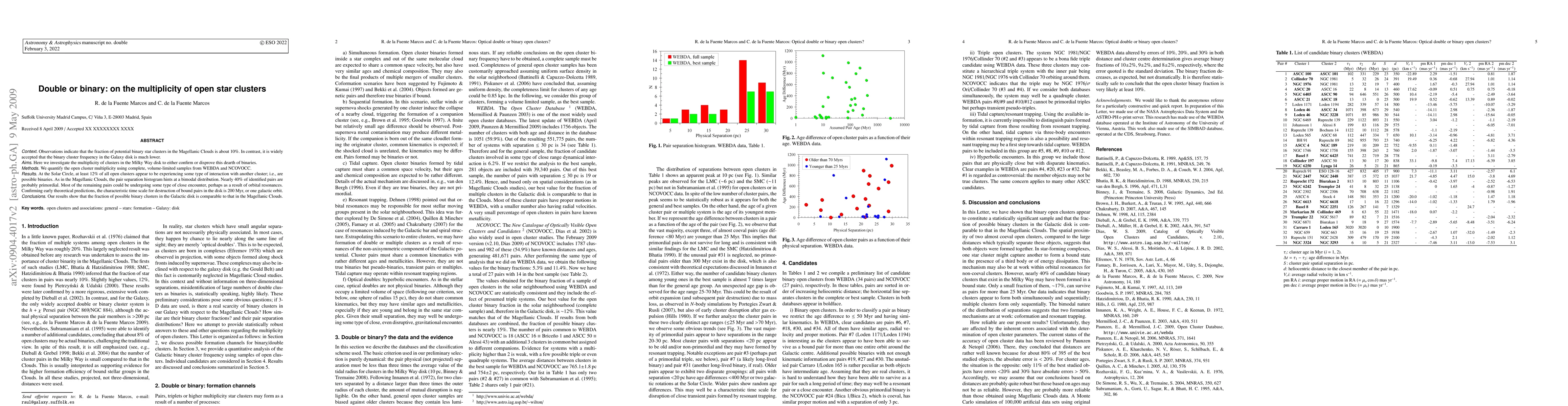 Open star clusters in the Milky Way disk may have a higher binary cluster frequency than previously thought, with at least 12% of clusters potentially being interacting pairs.