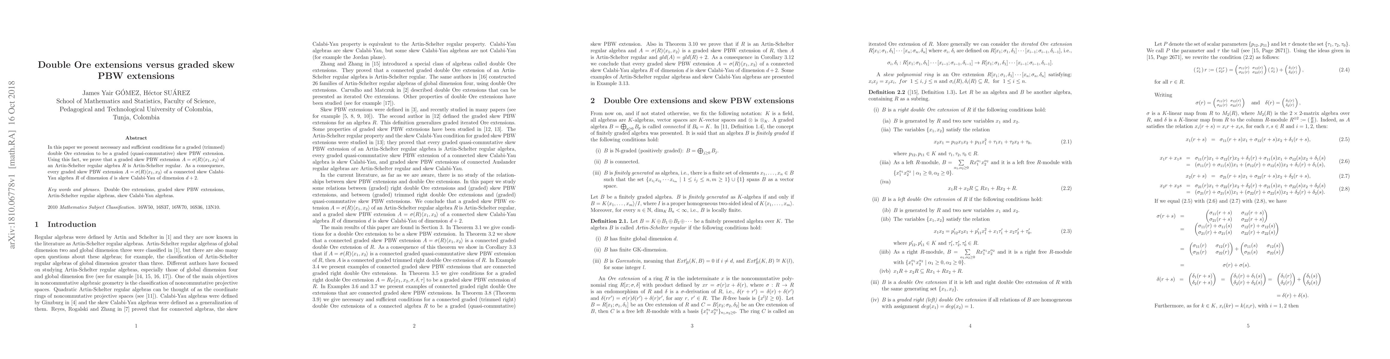 This paper establishes conditions for a graded double Ore extension to be a graded skew PBW extension, proving that such extensions of Artin-Schelter regular algebras remain Artin-Schelter regular, and extends this result to show that skew Calabi-Yau algebras gain an extra dimension when extended in this way.