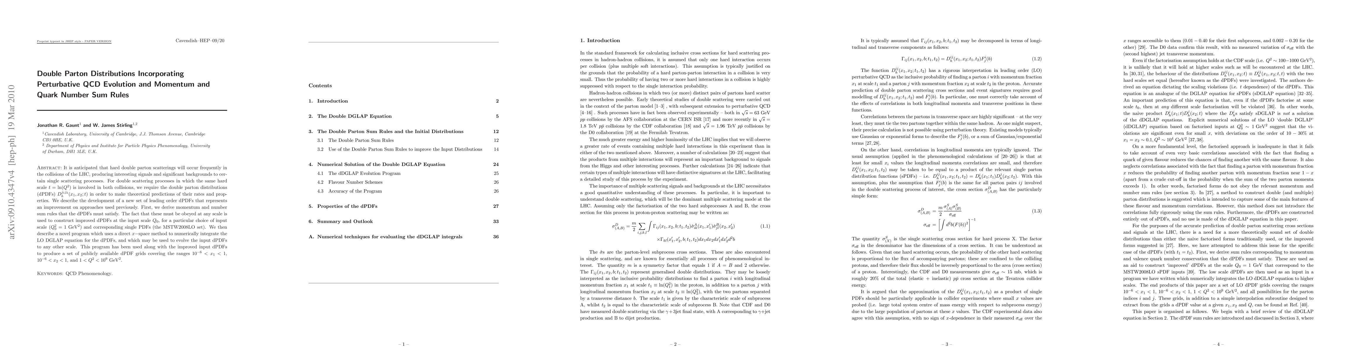 Researchers developed new double parton distributions to predict rates and properties of hard double parton scatterings at the LHC, incorporating perturbative QCD evolution and momentum sum rules.
