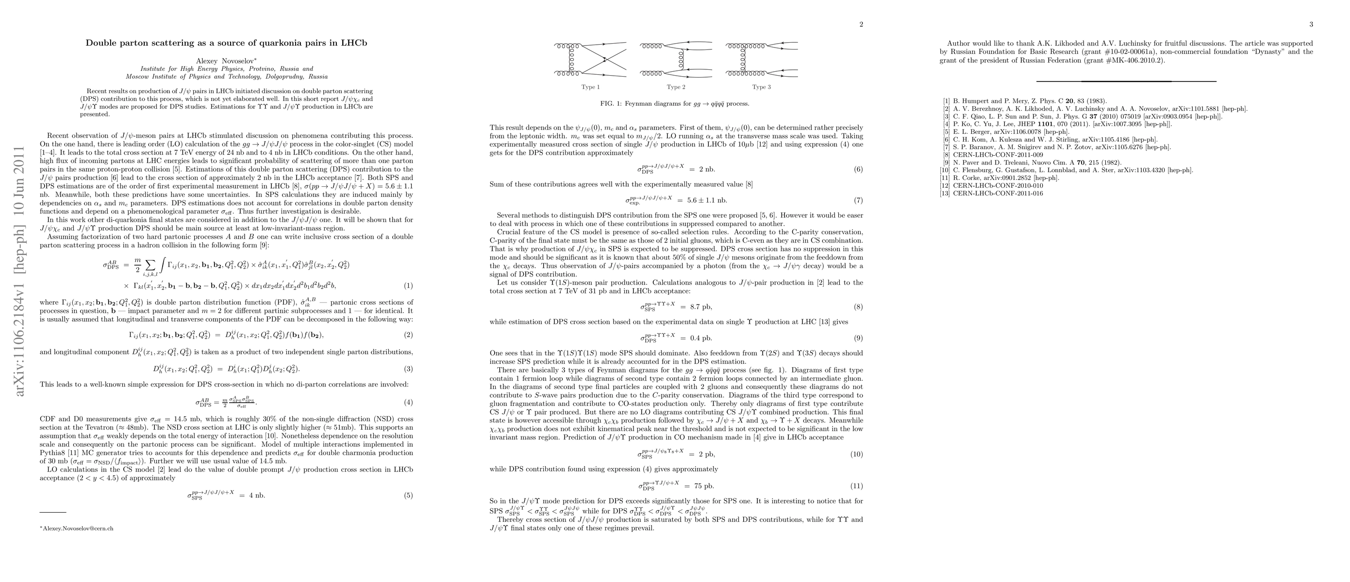 This paper explores double parton scattering (DPS) as a potential source for producing $J/\psi$ pairs in LHCb, proposing $J/\psi \chi_c$ and $J/\psi \Upsilon$ modes for DPS studies and presenting estimations for $\Upsilon \Upsilon$ and $J/\psi \Upsilon$ production in LHCb.