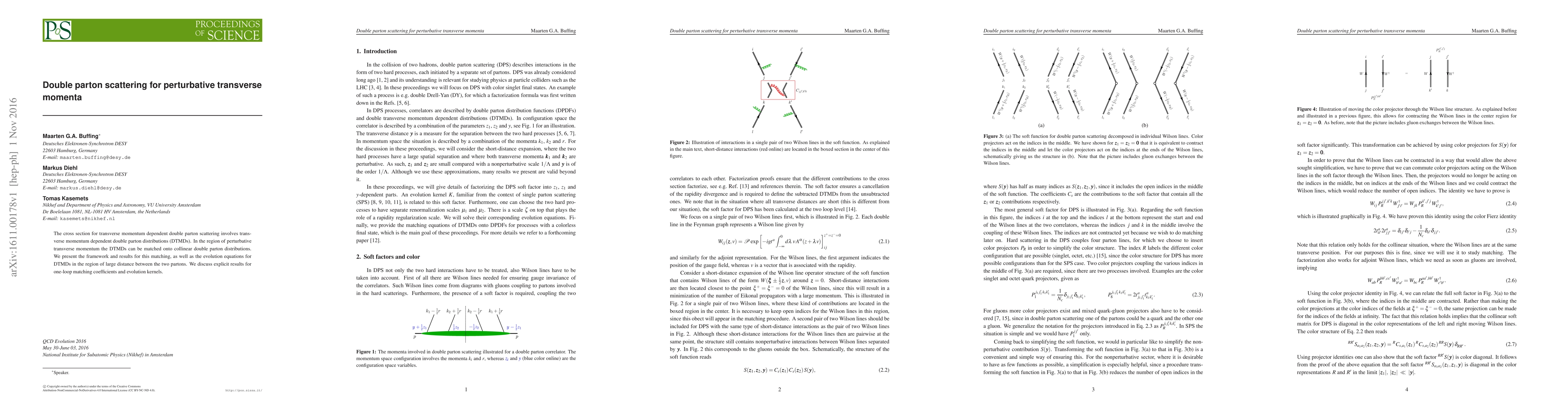 The cross section for transverse momentum dependent double parton scattering involves transverse momentum dependent double parton distributions (DTMDs). In the region of perturbative transverse momentum the DTMDs can be matched onto collinear double parton distributions. We present the framework and results for this matching, as well as the evolution equations for DTMDs in the region of large distance between the two partons. We discuss explicit results for one-loop matching coefficients and evolution kernels.