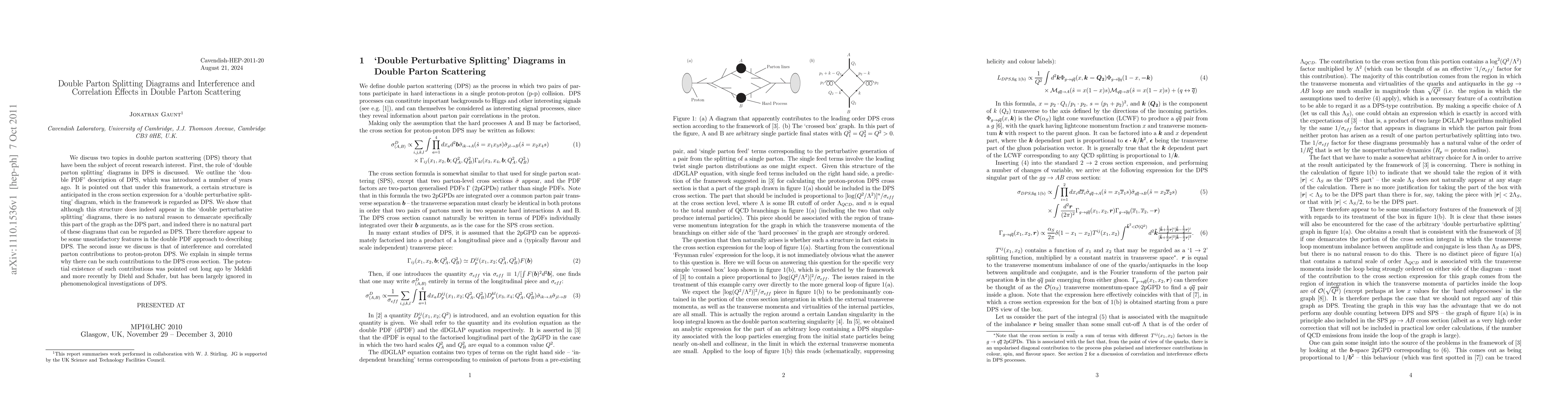We discuss two topics in double parton scattering (DPS) theory that have been the subject of recent research interest. First, the role of `double parton splitting' diagrams in DPS is discussed. We outline the `double PDF' description of DPS, which was introduced a number of years ago. It is pointed out that under this framework, a certain structure is anticipated in the cross section expression for a `double perturbative splitting' diagram, which in the framework is regarded as DPS. We show that although this structure does indeed appear in the `double perturbative splitting' diagrams, there is no natural reason to demarcate specifically this part of the graph as the DPS part, and indeed there is no natural part of these diagrams that can be regarded as DPS. There therefore appear to be some unsatisfactory features in the double PDF approach to describing DPS. The second issue we discuss is that of interference and correlated parton contributions to proton-proton DPS. We explain in simple terms why there can be such contributions to the DPS cross section. The potential existence of such contributions was pointed out long ago by Mekhfi and more recently by Diehl and Schafer, but has been largely ignored in phenomenological investigations of DPS.