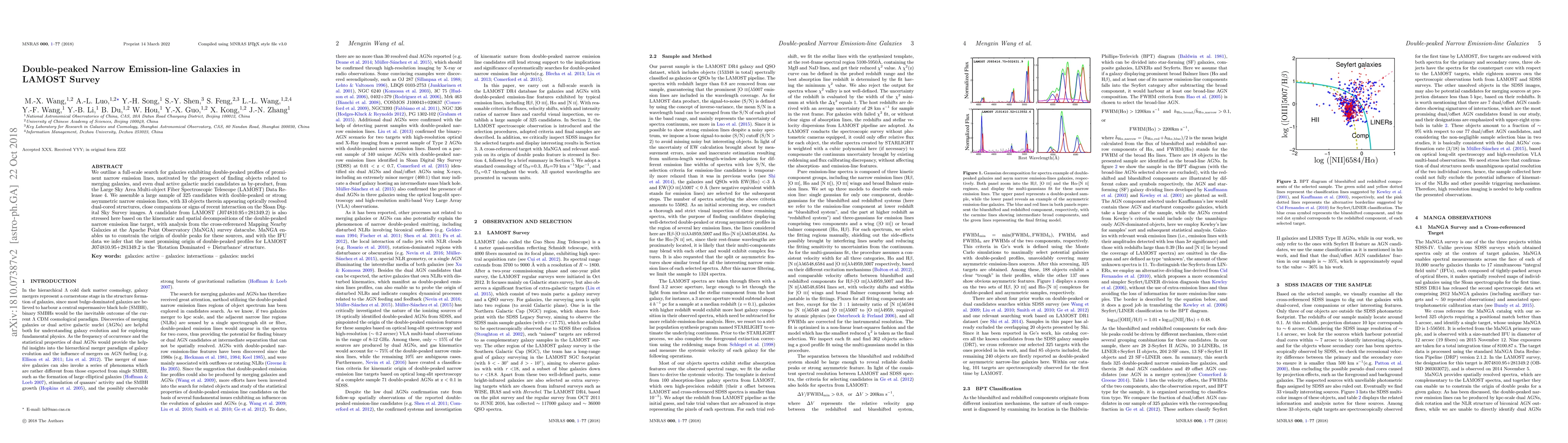 This paper identifies 325 galaxies from the LAMOST survey with double-peaked narrow emission lines, potentially indicating merging galaxies or dual active galactic nuclei. A specific candidate, LAMOST J074810.95+281349.2, is analyzed using MaNGA data, suggesting a "Rotation Dominated + Disturbance" structure as the origin of its double peaks.