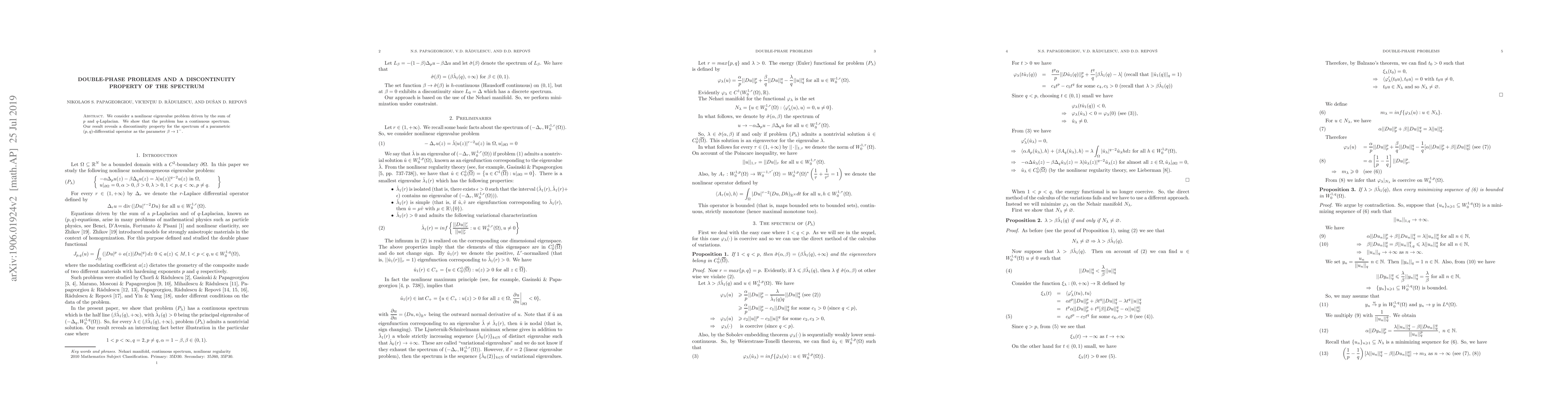 We consider a nonlinear eigenvalue problem driven by the sum of $p$ and $q$-Laplacian. We show that the problem has a continuous spectrum. Our result reveals a discontinuity property for the spectrum of a parametric ($p,q$)-differential operator as the parameter $\beta\rightarrow 1^-$.