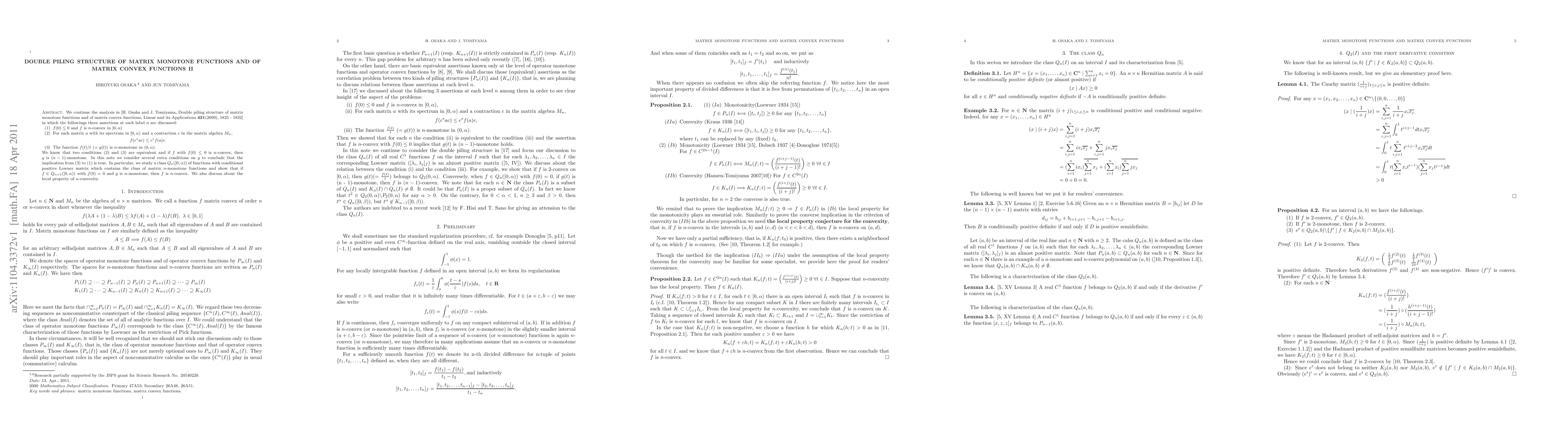 This paper investigates the double piling structure of matrix monotone functions and convex functions, establishing conditions for n-convexity and its implications on function behavior.