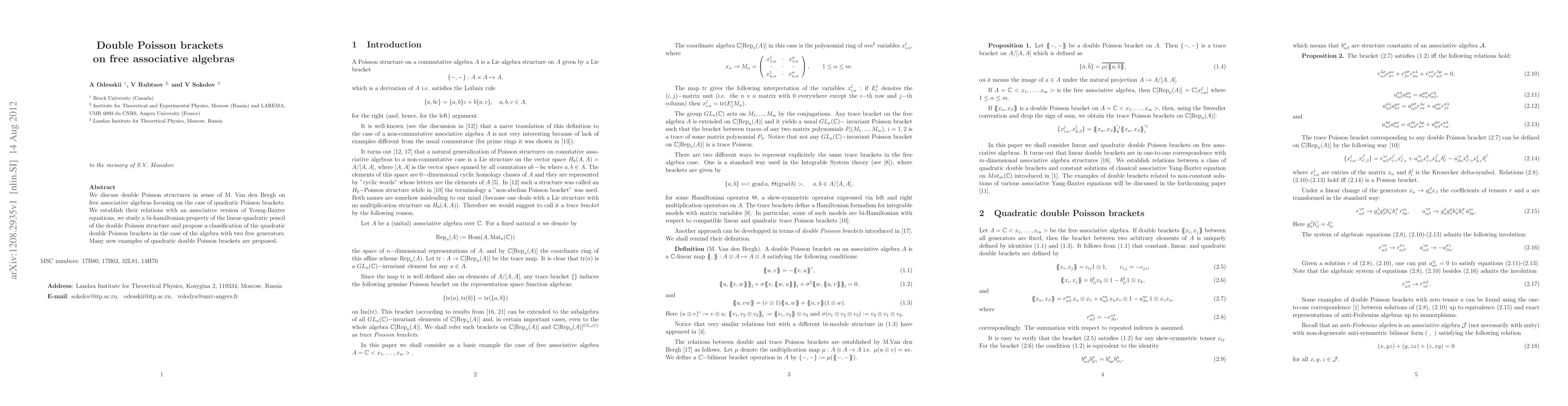 This paper explores double Poisson structures on free associative algebras, emphasizing quadratic brackets and their connections to associative versions of the Young-Baxter equations. It investigates the bi-Hamiltonian nature of these structures and classifies quadratic double Poisson brackets for algebras with two generators.