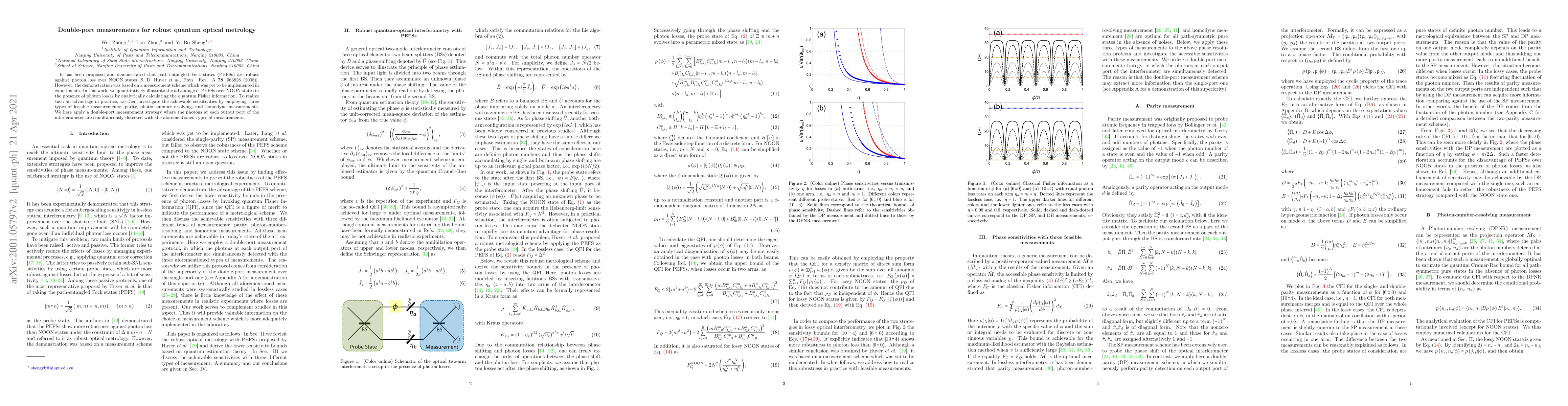 It has been proposed and demonstrated that path-entangled Fock states (PEFSs) are robust against photon loss over NOON states [S. D. Huver \emph{et al.}, Phys. Rev. A \textbf{78}, 063828 (2008)]. However, the demonstration was based on a measurement scheme which was yet to be implemented in experiments. In this work, we quantitatively illustrate the advantage of PEFSs over NOON states in the presence of photon losses by analytically calculating the quantum Fisher information. To realize such an advantage in practice, we then investigate the achievable sensitivities by employing three types of feasible measurements: parity, photon-number-resolving, and homodyne measurements. We here apply a double-port measurement strategy where the photons at each output port of the interferometer are simultaneously detected with the aforementioned types of measurements.
