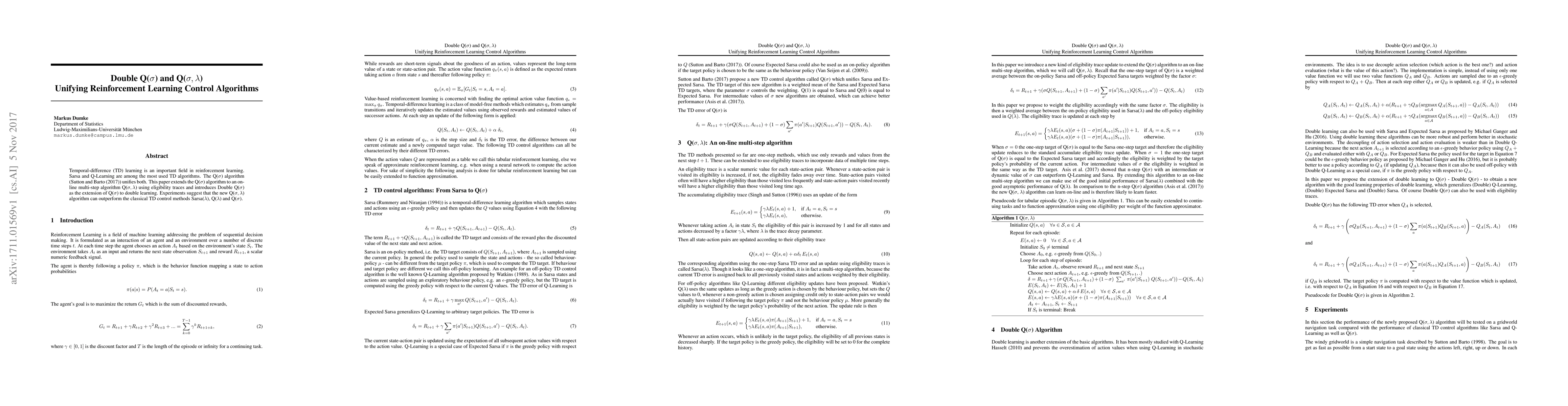 Temporal-difference (TD) learning is an important field in reinforcement learning. Sarsa and Q-Learning are among the most used TD algorithms. The Q($\sigma$) algorithm (Sutton and Barto (2017)) unifies both. This paper extends the Q($\sigma$) algorithm to an online multi-step algorithm Q($\sigma, \lambda$) using eligibility traces and introduces Double Q($\sigma$) as the extension of Q($\sigma$) to double learning. Experiments suggest that the new Q($\sigma, \lambda$) algorithm can outperform the classical TD control methods Sarsa($\lambda$), Q($\lambda$) and Q($\sigma$).