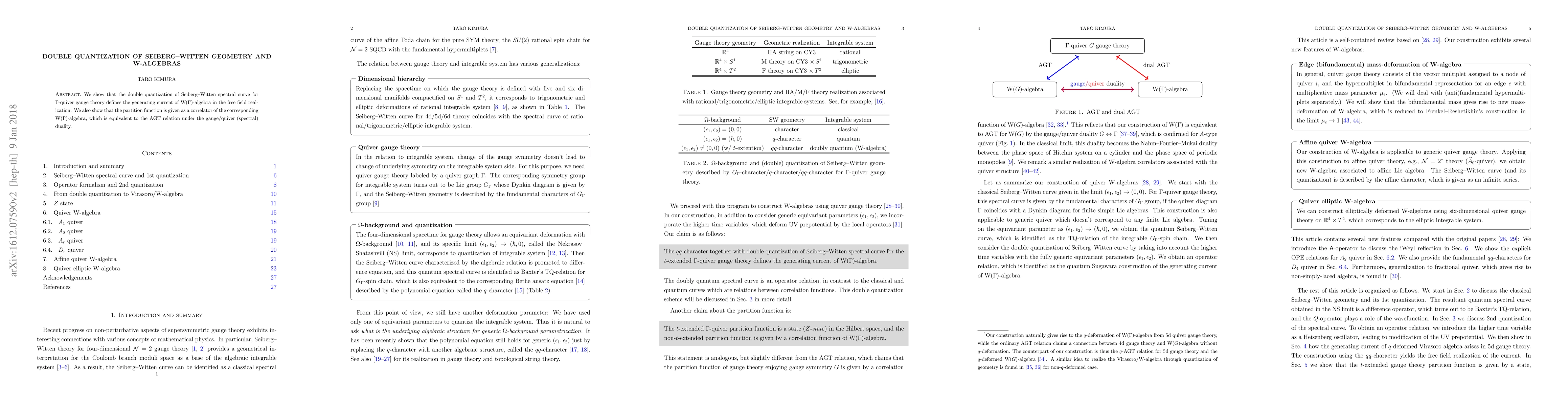 We show that the double quantization of Seiberg-Witten spectral curve for $\Gamma$-quiver gauge theory defines the generating current of W$(\Gamma)$-algebra in the free field realization. We also show that the partition function is given as a correlator of the corresponding W$(\Gamma)$-algebra, which is equivalent to the AGT relation under the gauge/quiver (spectral) duality.