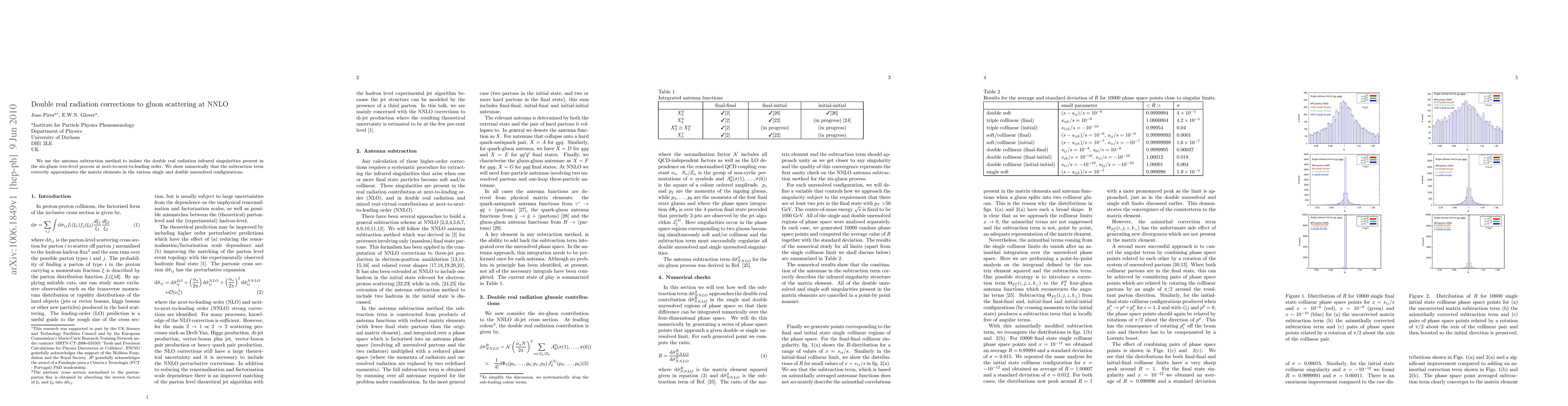 We use the antenna subtraction method to isolate the double real radiation infrared singularities present in the six-gluon tree-level process at next-to-next-to-leading order. We show numerically that the subtraction term correctly approximates the matrix elements in the various single and double unresolved configurations.