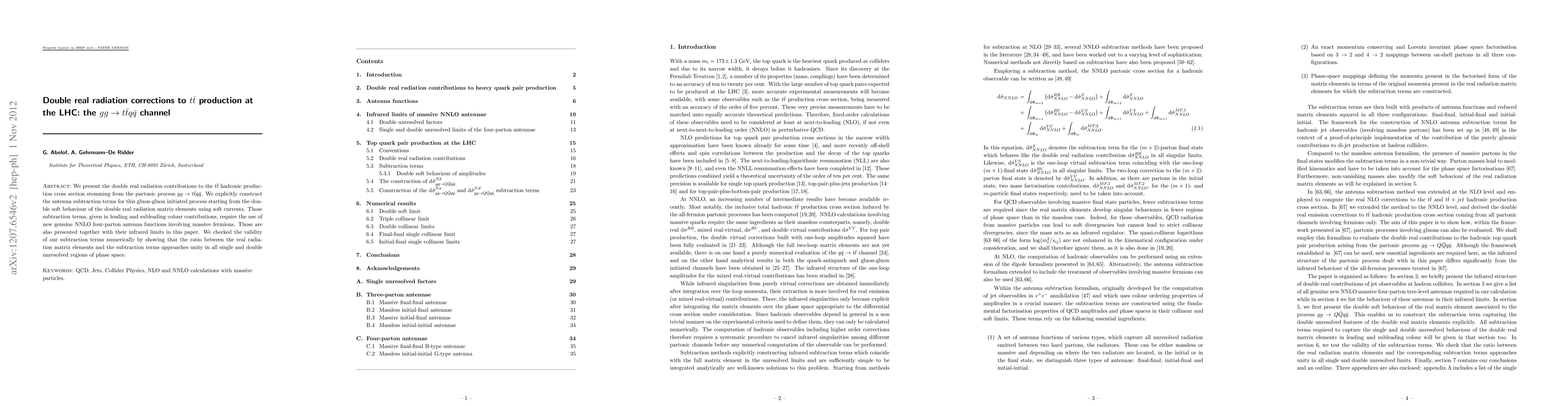 This paper presents double real radiation corrections for $t\bar{t}$ production via the $gg\rightarrow t\bar{t}q\bar{q}$ process at the LHC, introducing new NNLO four-parton antenna functions for massive fermions and validating the subtraction terms numerically.