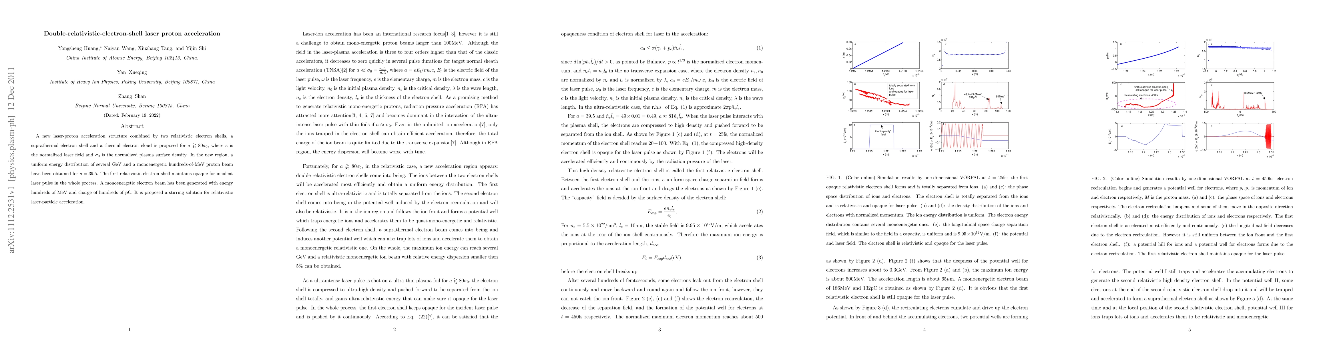 This paper proposes a novel laser-proton acceleration method using two relativistic electron shells, achieving uniform GeV-scale proton energy distribution and a monoenergetic hundreds-of-MeV proton beam. The method maintains an opaque first electron shell during the process, generating a monoenergetic electron beam with high energy and charge.