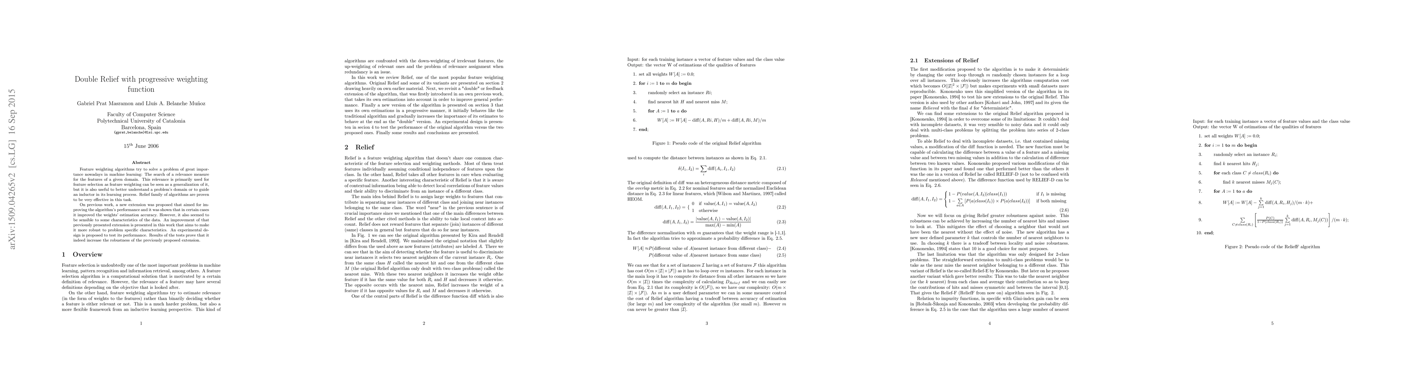 This paper proposes an improved version of a progressive weighting function extension to the Relief family of algorithms, aiming to enhance the robustness of feature weighting and selection. Experimental results demonstrate that the new method effectively increases the algorithm's robustness to problem-specific characteristics.