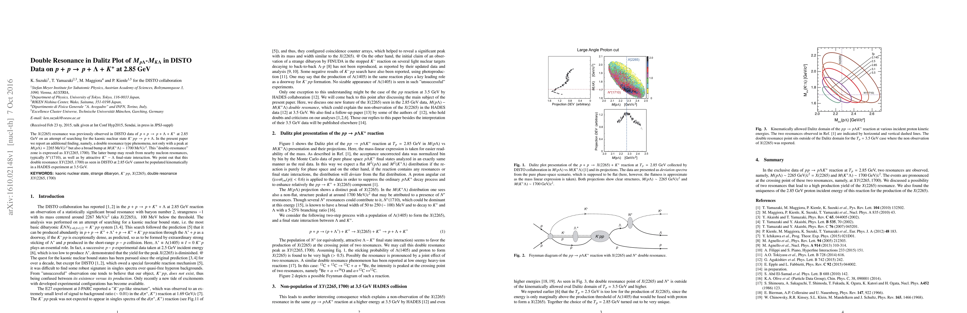 The X(2265) resonance was previously observed in DISTO data of p+p rightarrow p+Lambda+K+ at 2.85 GeV on an attempt of searching for the kaonic nuclear state K-pp rightarrow p + Lambda. In the present paper we report an additional finding, namely, a double resonance type phenomena, not only with a peak at M(pLambda) = 2265 MeV/c2 but also a broad bump at M(K+ Lambda) ~ 1700 MeV/c2. This "double-resonance" zone is expressed as XY(2265, 1700). The latter bump may result from nearby nucleon resonances, typically N*(1710), as well as by attractive K - Lambda final-state interaction. We point out that this double resonance XY(2265, 1700) as seen in DISTO at 2.85 GeV cannot be populated kinematically in a HADES experiment at 3.5 GeV.
